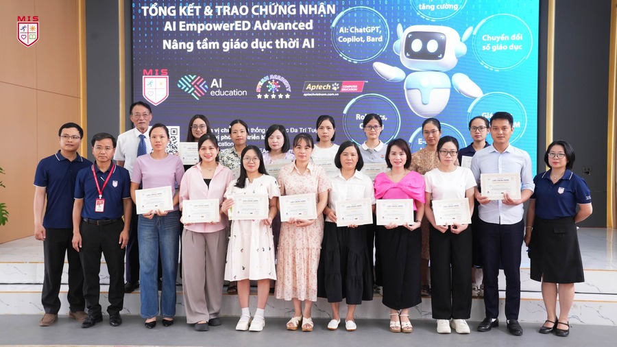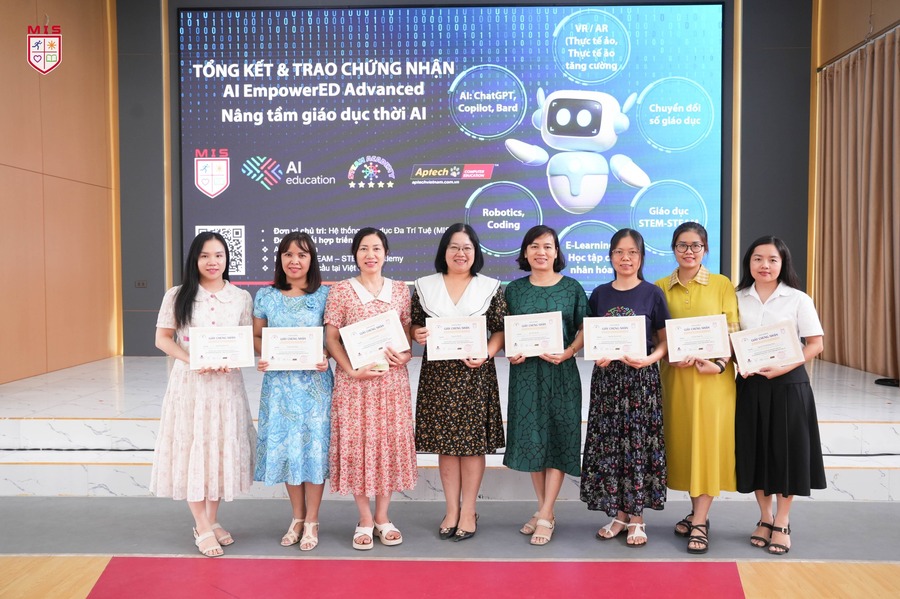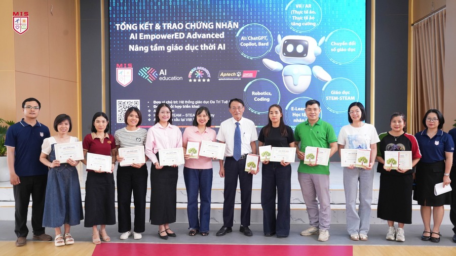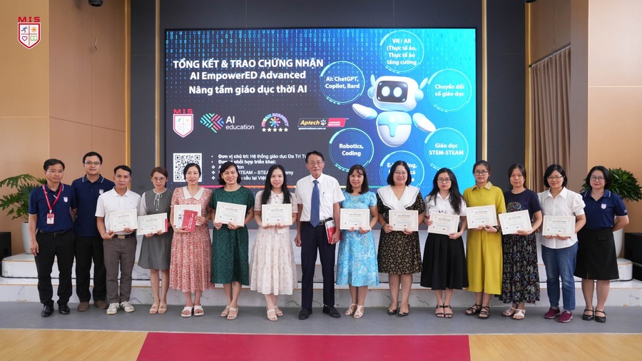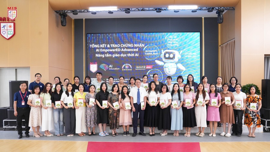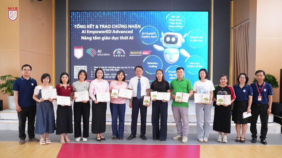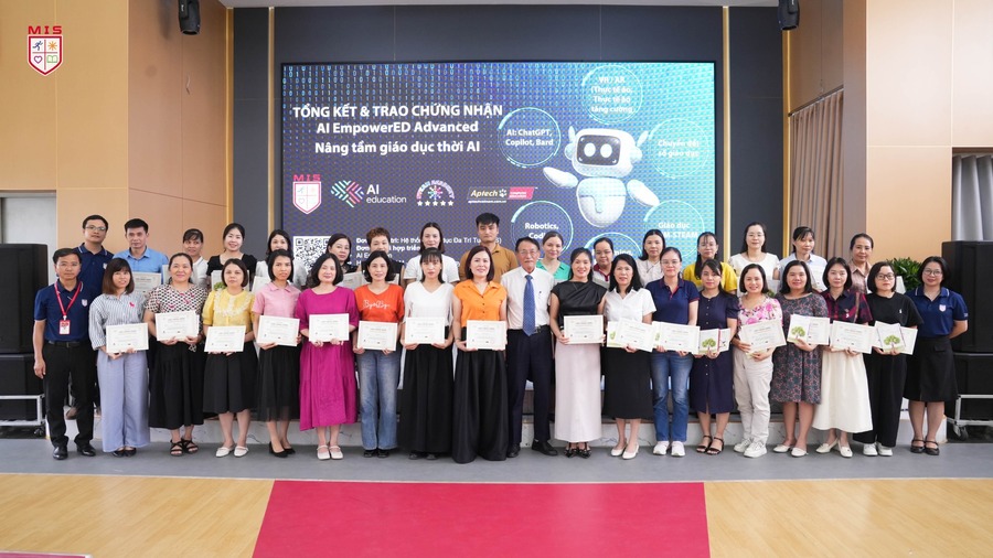 Sau 2 khoá học cơ bản với hàng trăm giáo viên trên toàn thành phố, sáng 03.06, MIS cùng Học viện STEAM tiếp tục lan toả tinh thần dấn thân – nối kết – khai phóng qua Khóa đào tạo AI nâng cao dành riêng cho gần 200 cán bộ quản lý và giáo viên cốt cán đến từ: