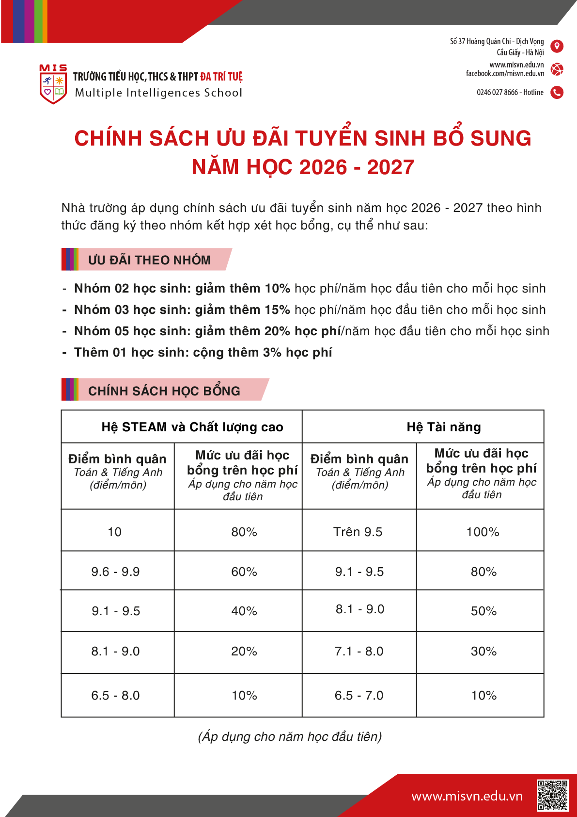 CHÍNH SÁCH ƯU ĐÃI TUYỂN SINH BỔ SUNG 2026 - 2027