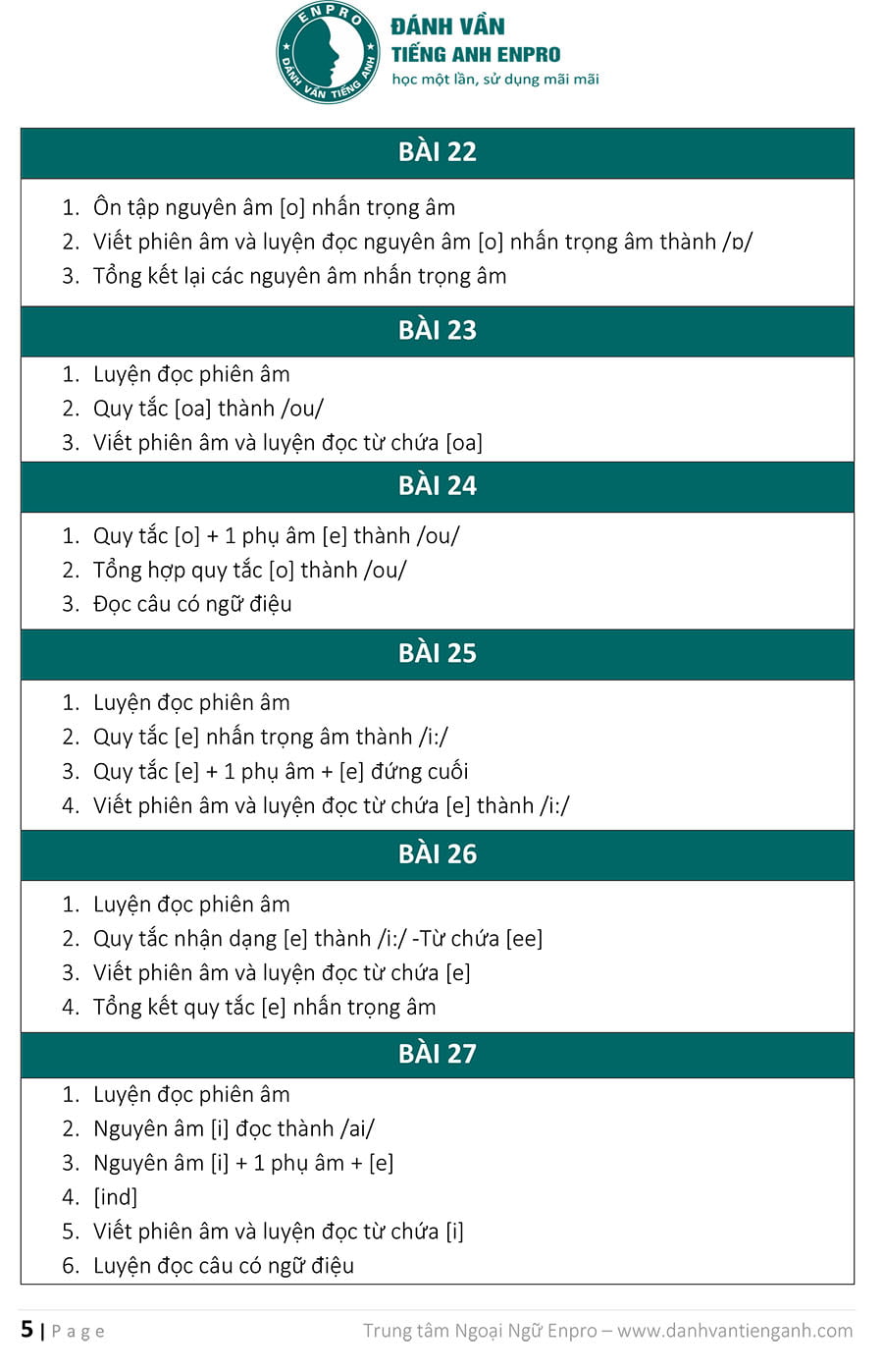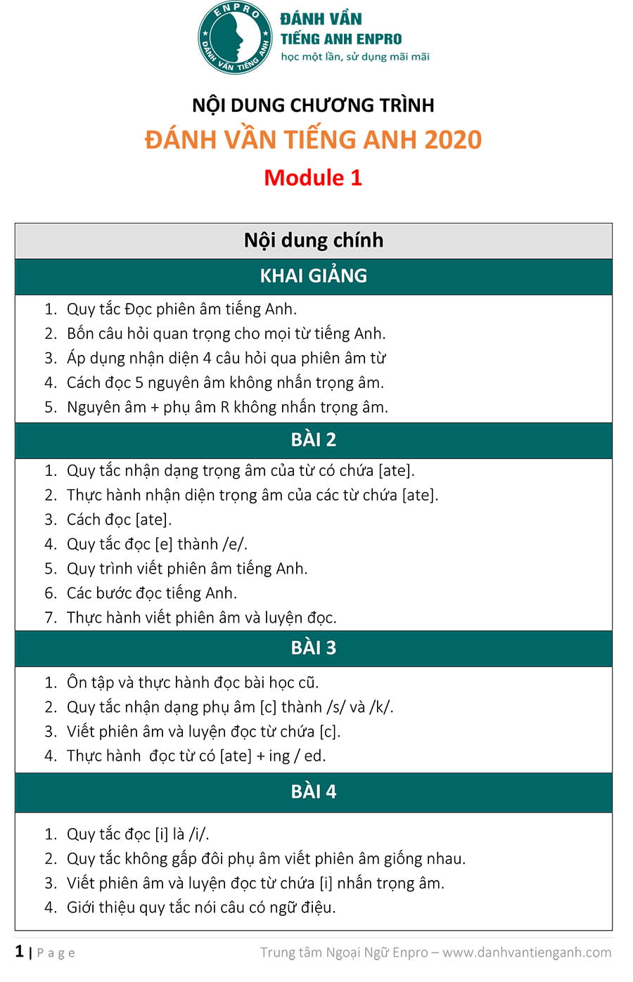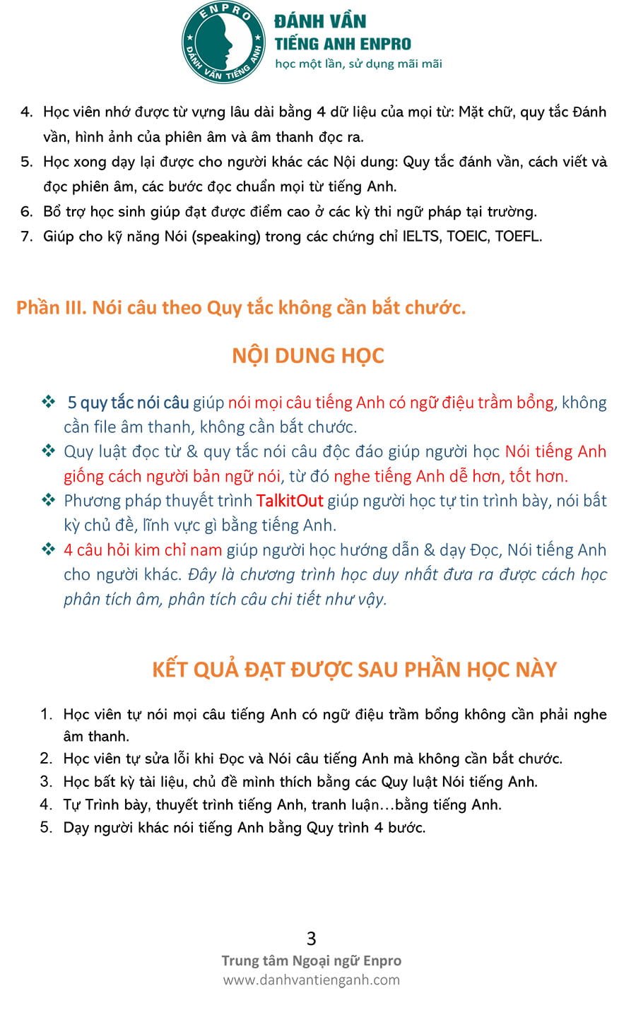 CHƯƠNG TRÌNH HỌC ĐÁNH VẦN, ĐỌC VÀ NÓI TIẾNG ANH THEO QUY LUẬT