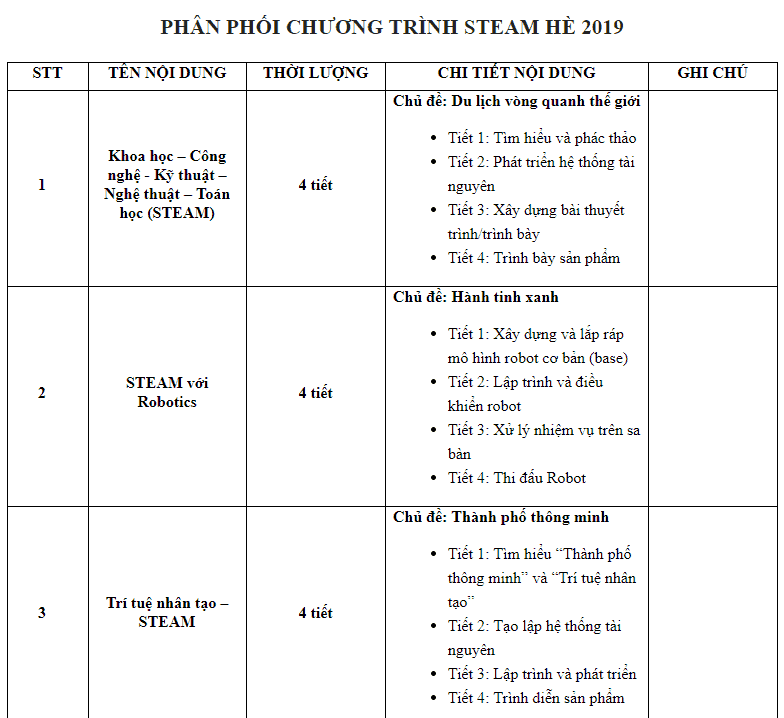 - Sáng tạo cùng khoa học, công nghệ (Tích hợp Steam).