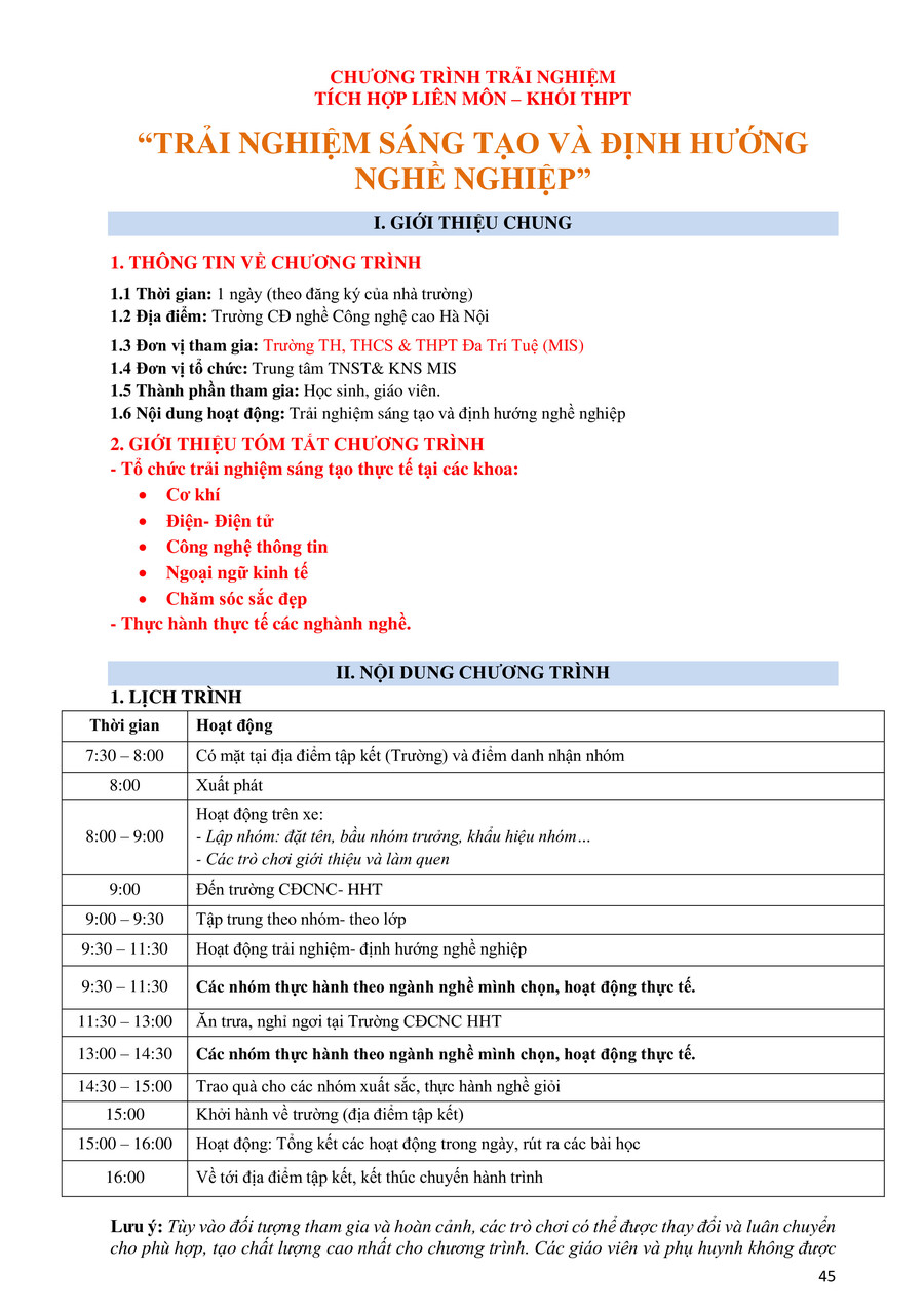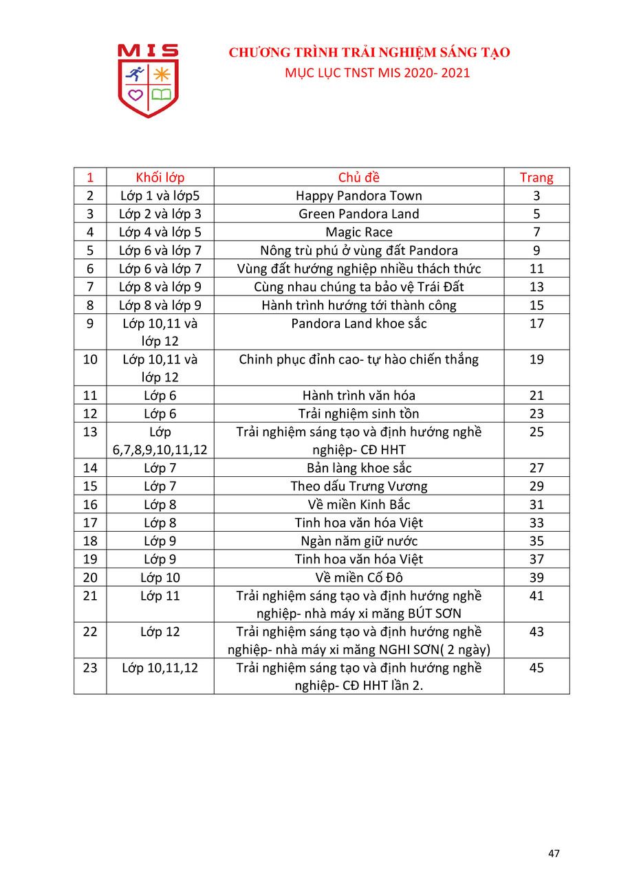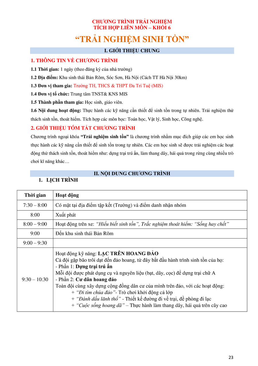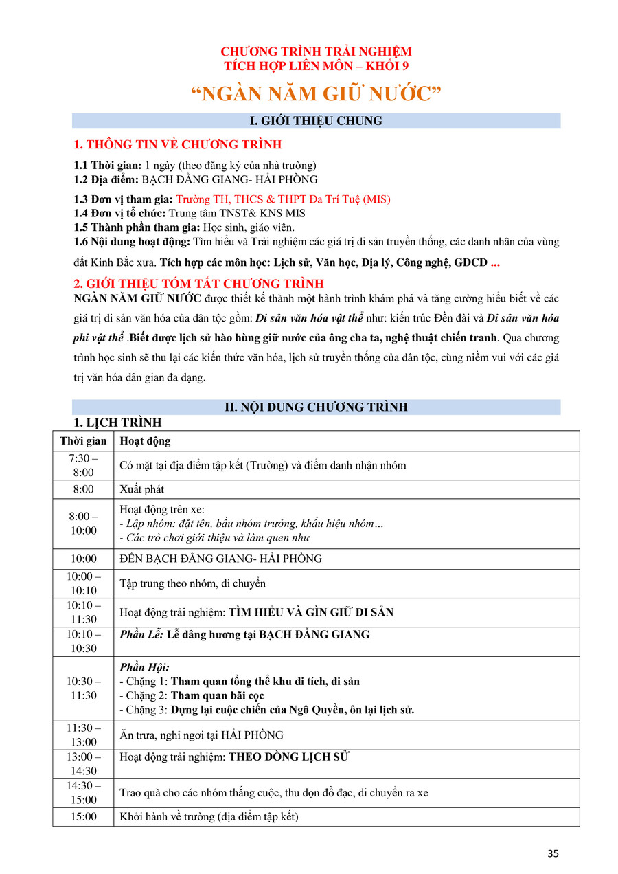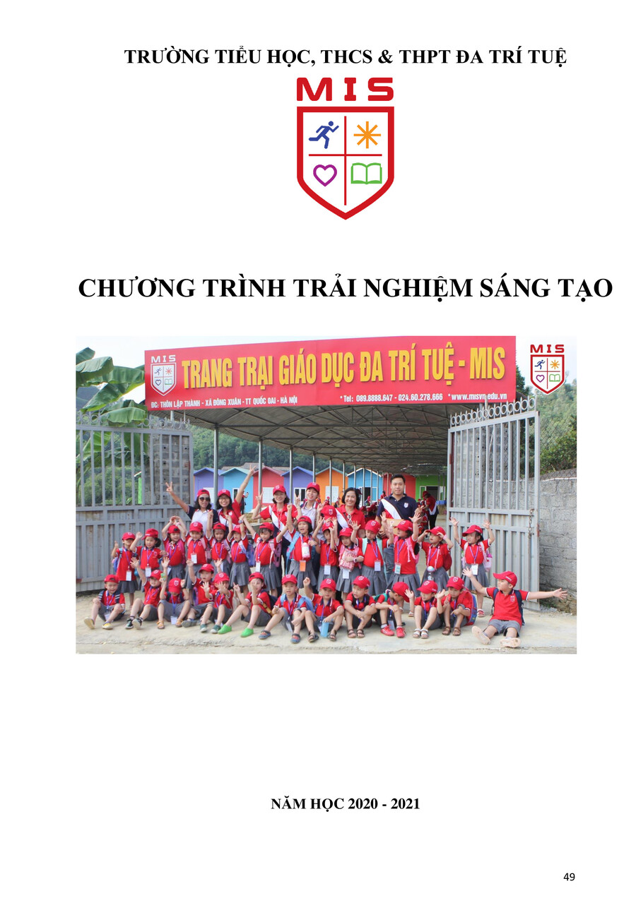 CHƯƠNG TRÌNH TRẢI NGHIỆM SÁNG TẠO NĂM HỌC 2022 – 2023