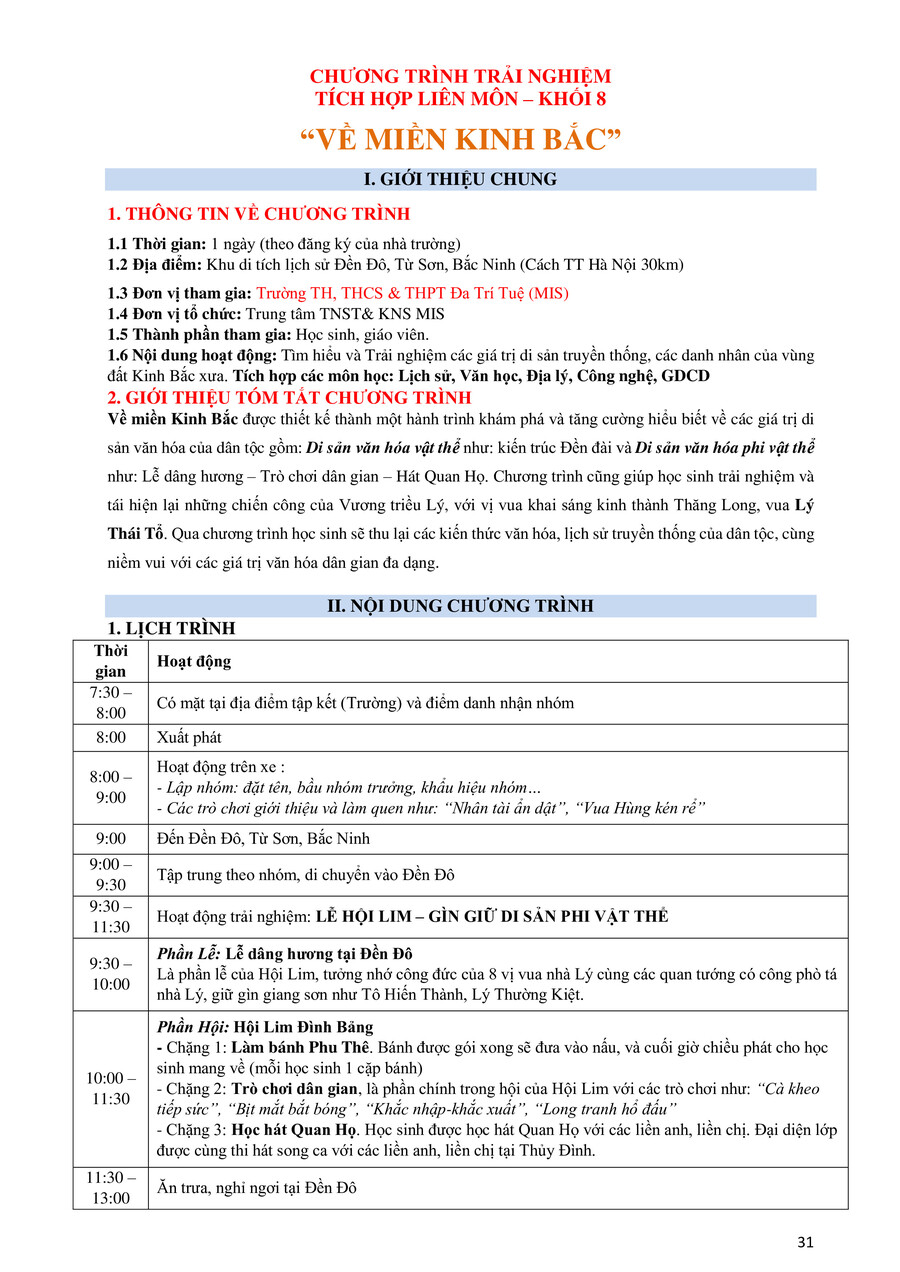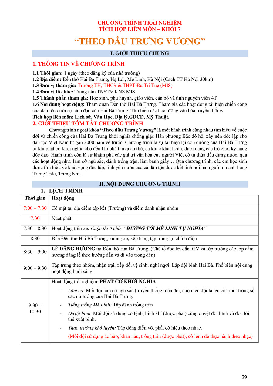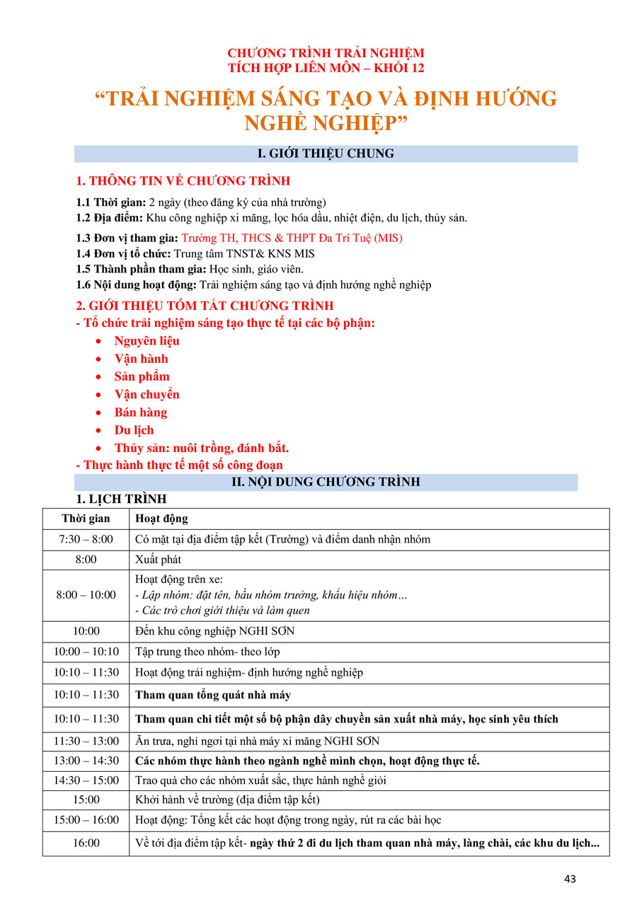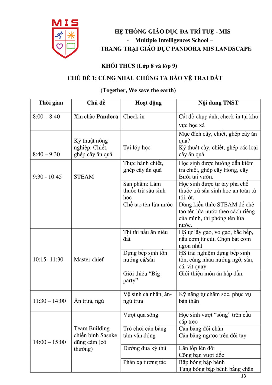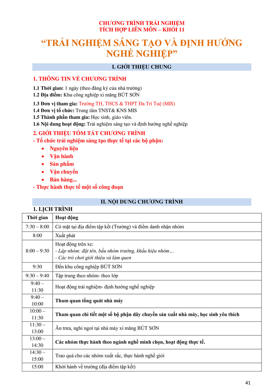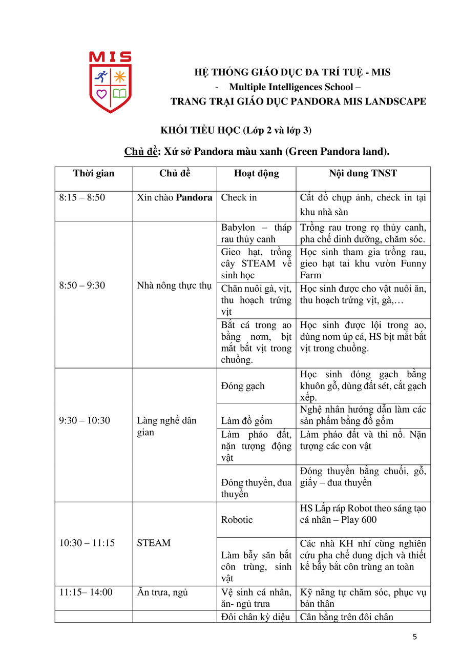 CHƯƠNG TRÌNH TRẢI NGHIỆM SÁNG TẠO NĂM HỌC 2022 – 2023