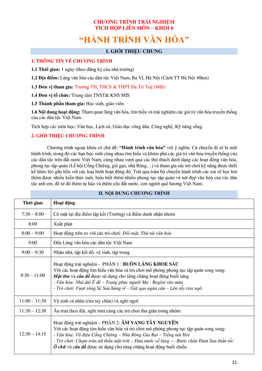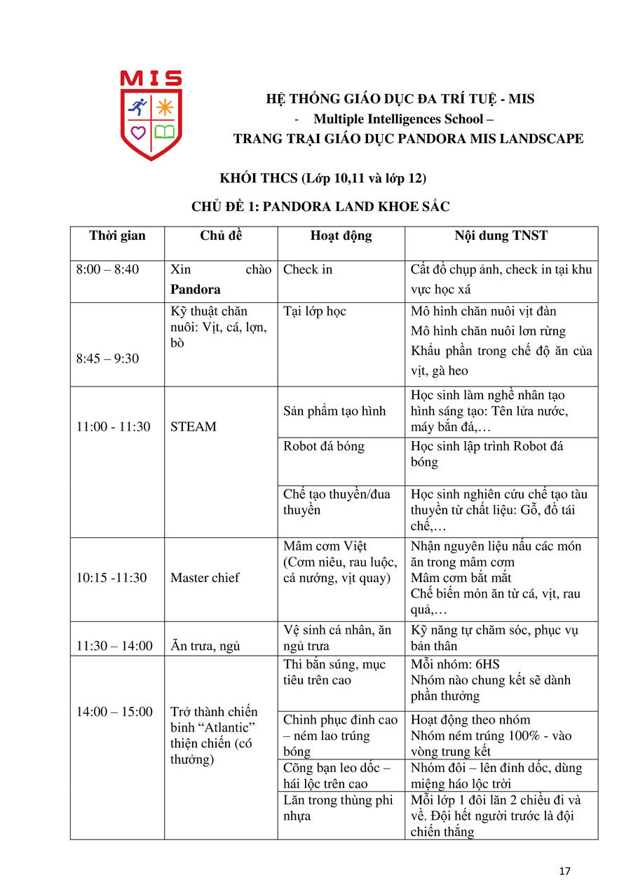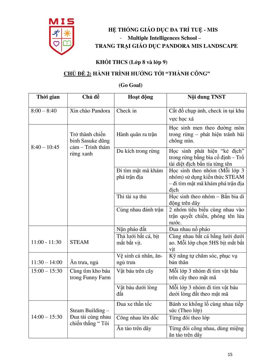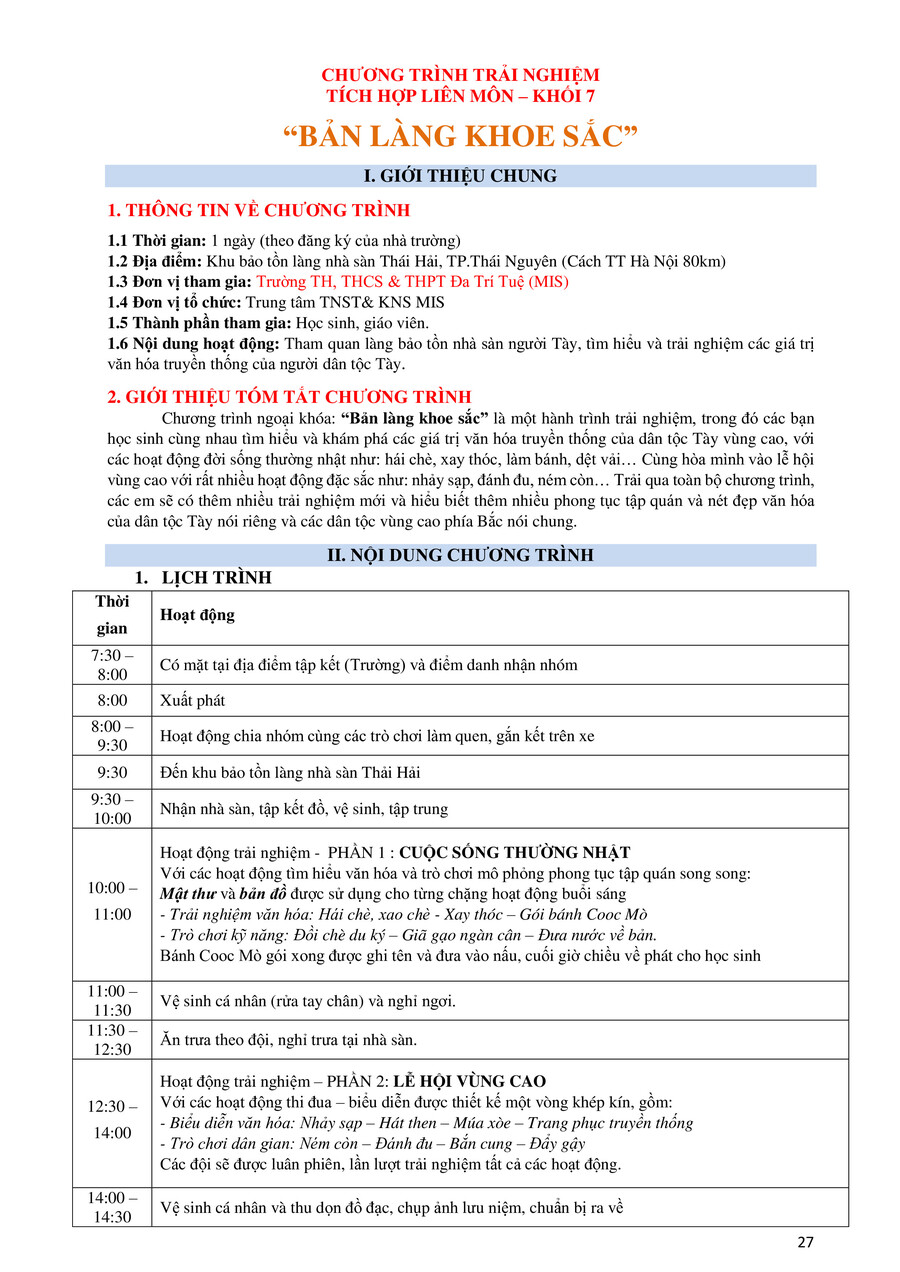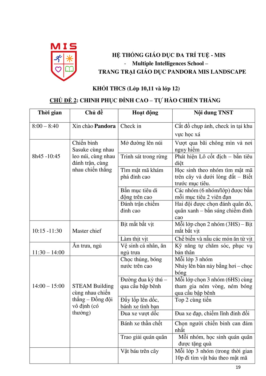 CHƯƠNG TRÌNH TRẢI NGHIỆM SÁNG TẠO NĂM HỌC 2022 – 2023