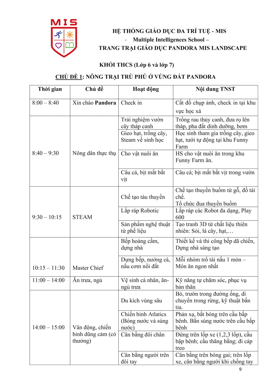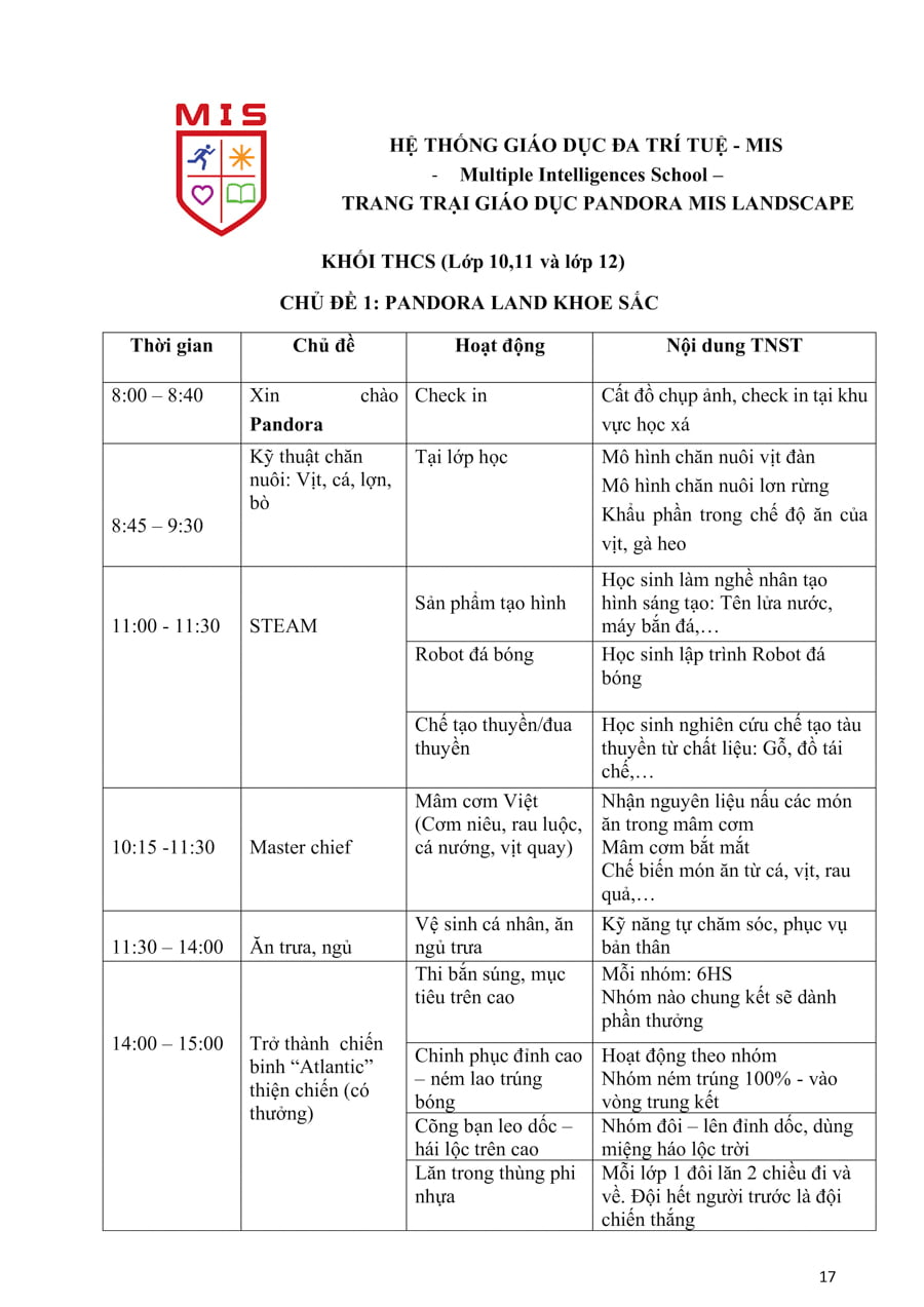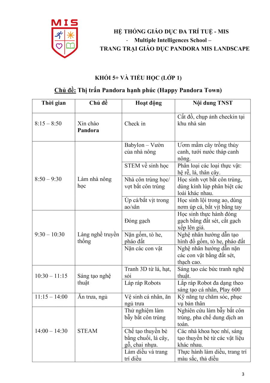 Trang trại giáo dục trải nghiệm sáng tạo MIS có diện tích gần 6Ha lấy cảm hứng từ câu chuyện về nàng Pandora trong thần thoại Hy Lạp, Pandora MIS Landscape xuất phát từ niềm tin và hy vọng mọi người tới nơi này đều cảm thấy hạnh phúc, tình yêu thiên nhiên lan tỏa với những trái tim kết nối yêu thương lao động, sáng tạo trân trọng giá trị cuộc sống, hướng tới tương lai qua những hoạt động trải nghiệm bổ ích, thiết thực, sôi động gắn với khoa học, công nghệ, kỹ thuật, nghệ thuật, toán học và thể chất, …