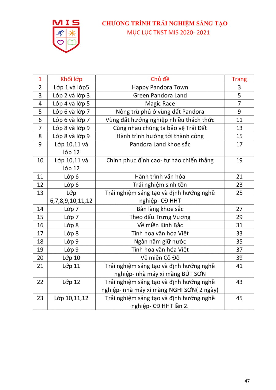 Trường Tiểu học, THCS&THPT Đa Trí Tuệ xin được chia sẻ đến Quý phụ huynh và học sinh “Chương trình Trải nghiệm sáng tạo năm học 2020-2021”