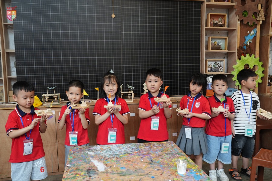 Sau khi trải qua những hoạt động học tập, các con được sử dụng cưa, búa, đinh, gỗ,… một cách rất khéo léo và các con đã rất tự hào khi chính tay làm ra một chiếc thuyền gỗ vô cùng xinh xắn.