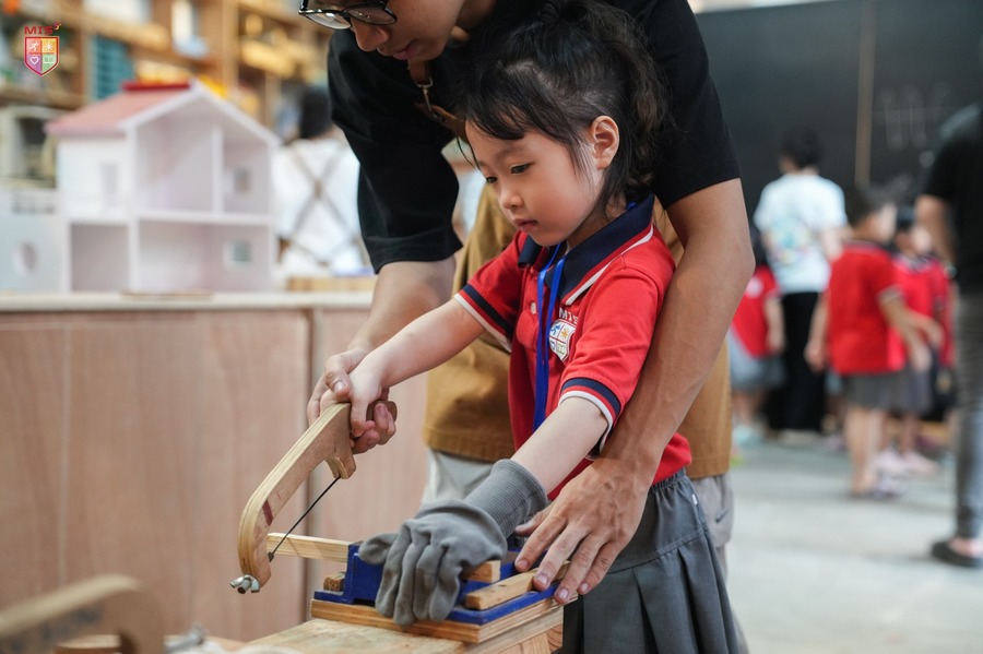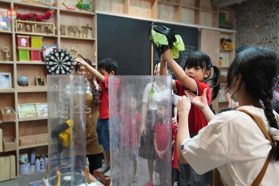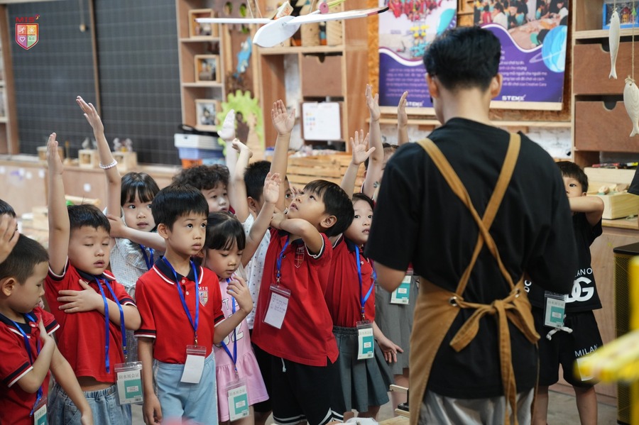 Các bé đã có một ngày thật sự thú vị khi được tham gia vào các hoạt động học tập và trải nghiệm tại Xưởng Sáng Tạo. Tại đây, MISers không chỉ được tìm hiểu về các khái niệm STEAM một cách sinh động mà còn được chủ động tham gia vào các thí nghiệm vô cùng hấp dẫn như: thử thách bắn vòng tròn khói từ súng thần công, mô phỏng các hành tinh trong hệ mặt trời bay lơ lửng trên không bằng súng hơi, mô thức nhảy dù trong lồng hơi để hiểu về ứng dụng của sức gió và không khí,…