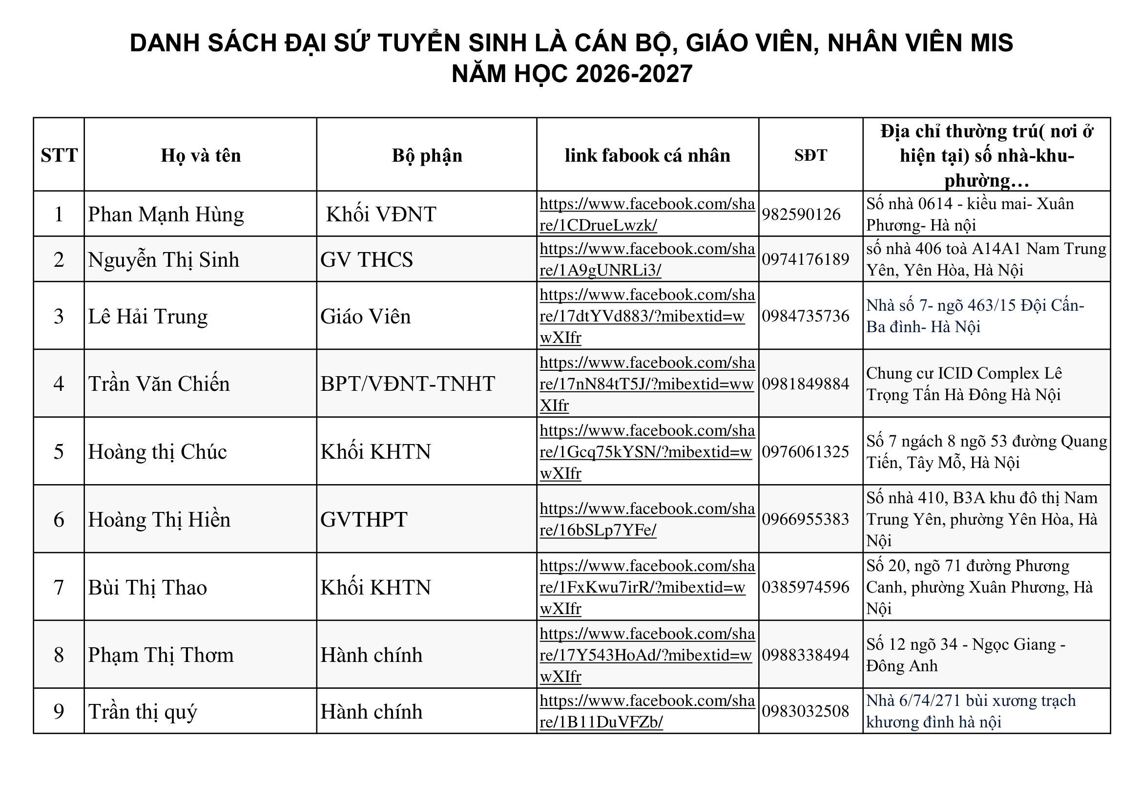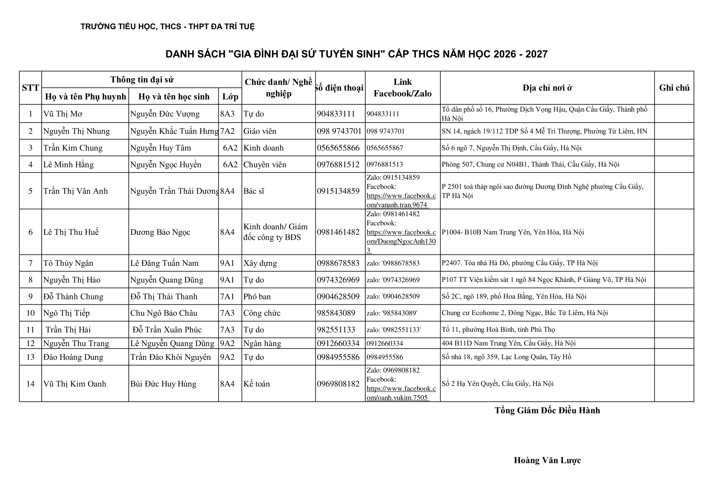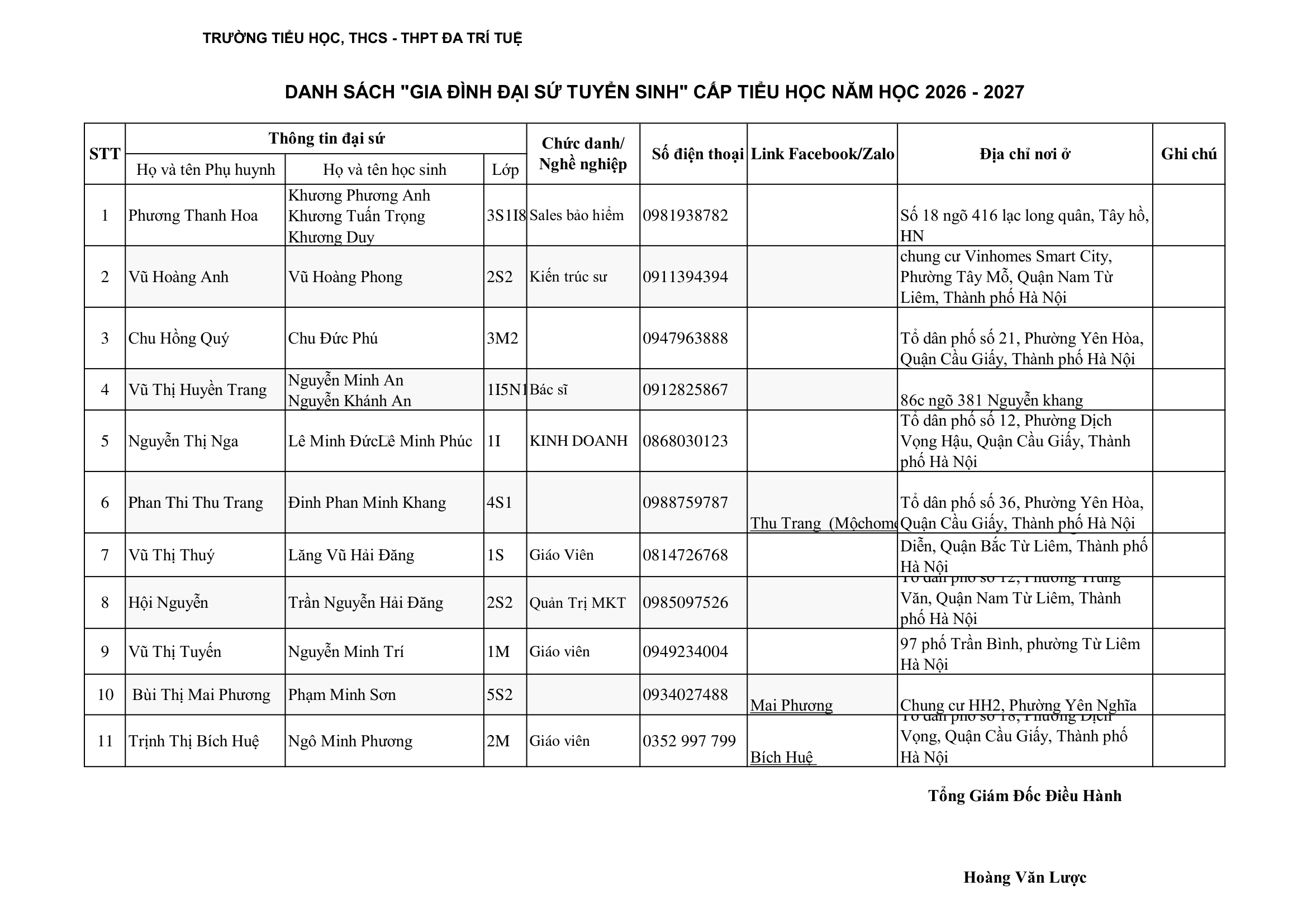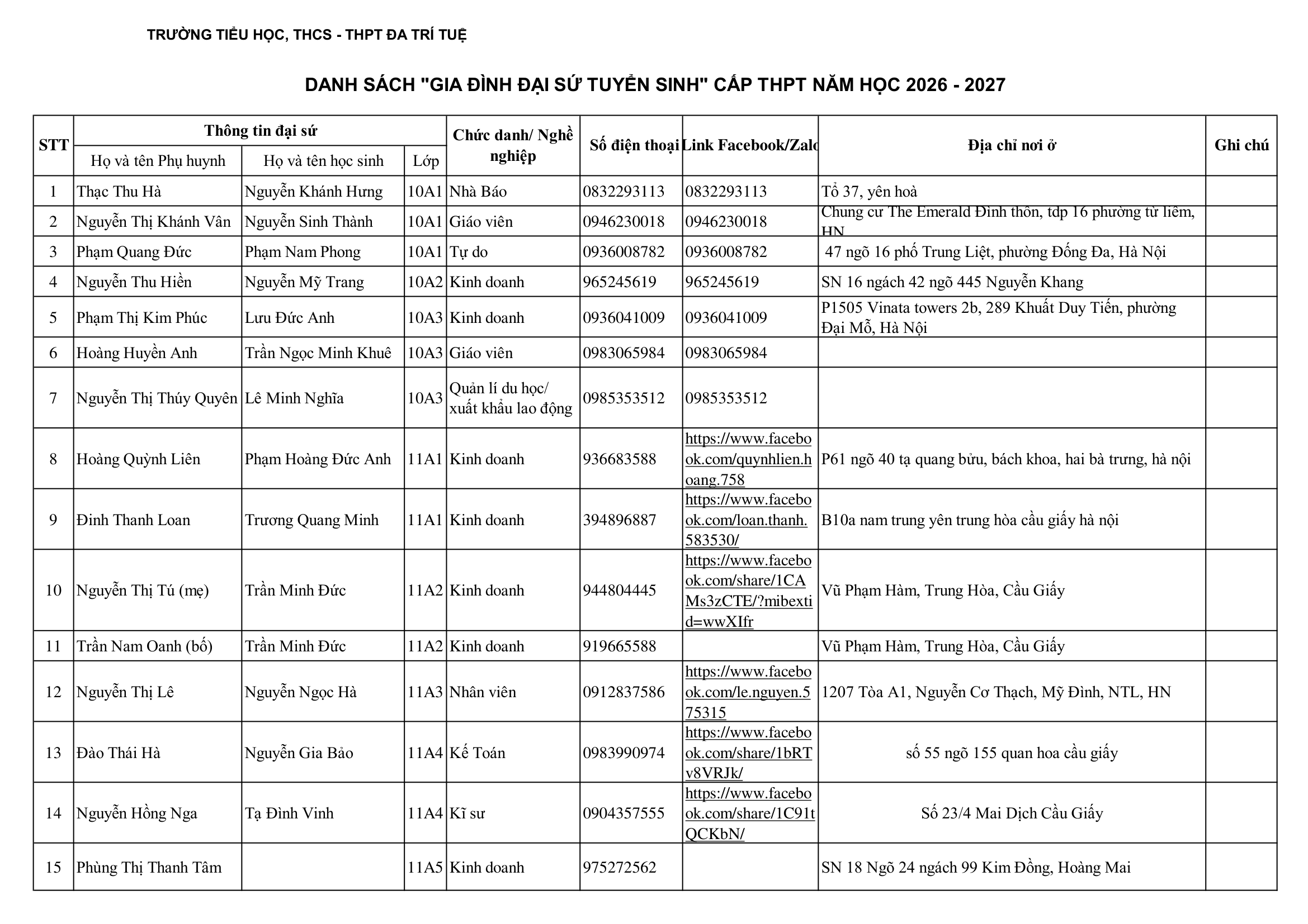 ĐẠI SỨ TUYỂN SINH NĂM HỌC 2026 – 2027