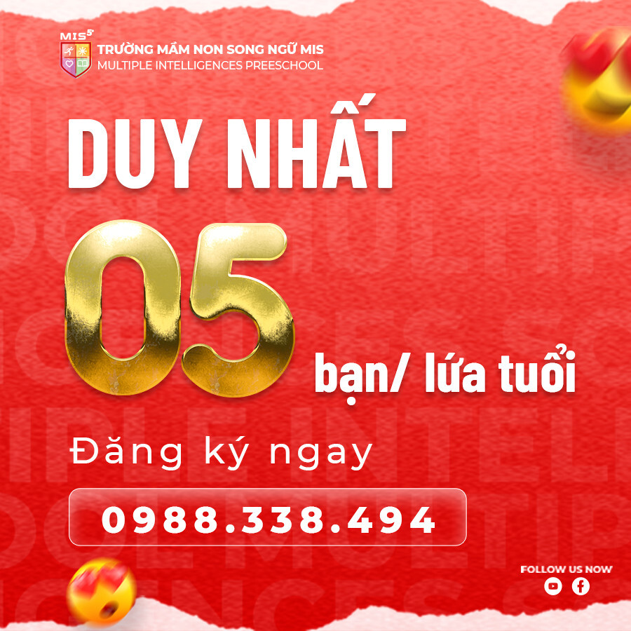 Hãy để Mầm Non MIS đồng hành cùng con em bạn trong hành trình trưởng thành với những trải nghiệm học tập đầy thú vị và bổ ích. Đăng ký ngay hôm nay để không bỏ lỡ cơ hội tuyệt vời này!