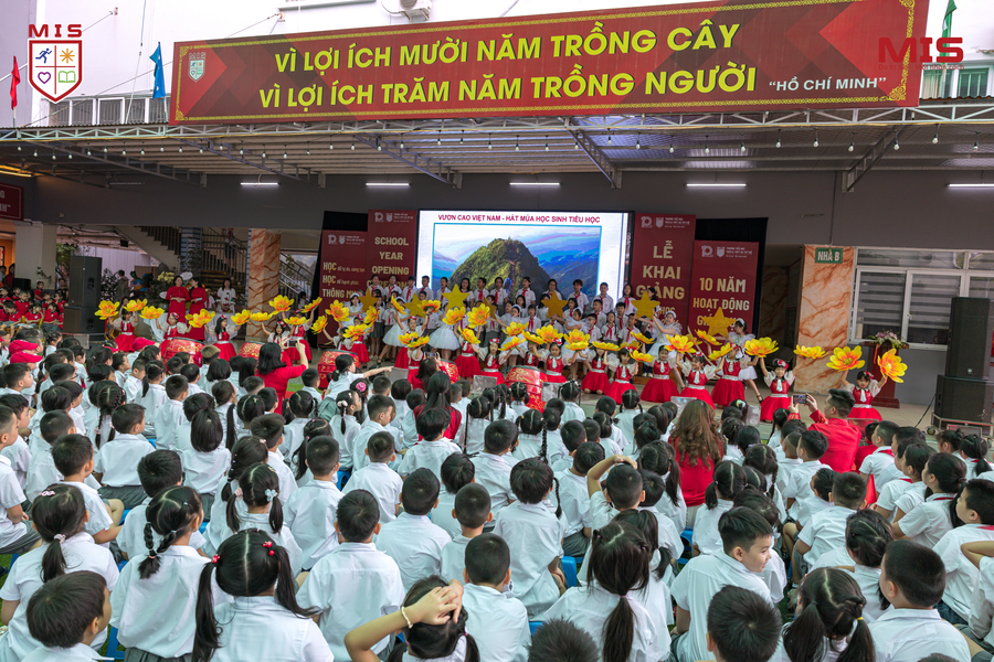 Gia Linh (10A1): Lễ Khai giảng năm nay đối với tôi vừa quen vừa lạ. Quen vì tôi được người thầy yêu quý dạy dỗ và động viên mình bước qua chặng đường chuyển cấp và đây là một trong những bước khởi đầu quan trọng của một học sinh. Còn lạ vì tôi đã bước vào một ngôi trường mới – THPT MIS, cảm giác trong tôi vừa hồi hộp xen lẫn sự háo hức, rộn ràng cũng như tự hào vì tôi đã trở thành MISer thực thụ.