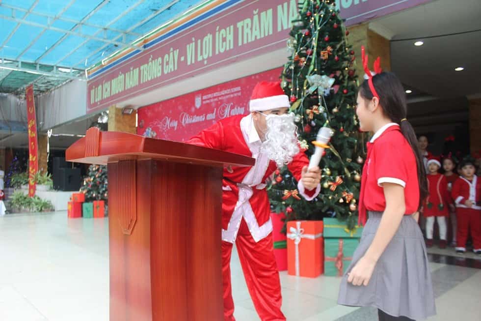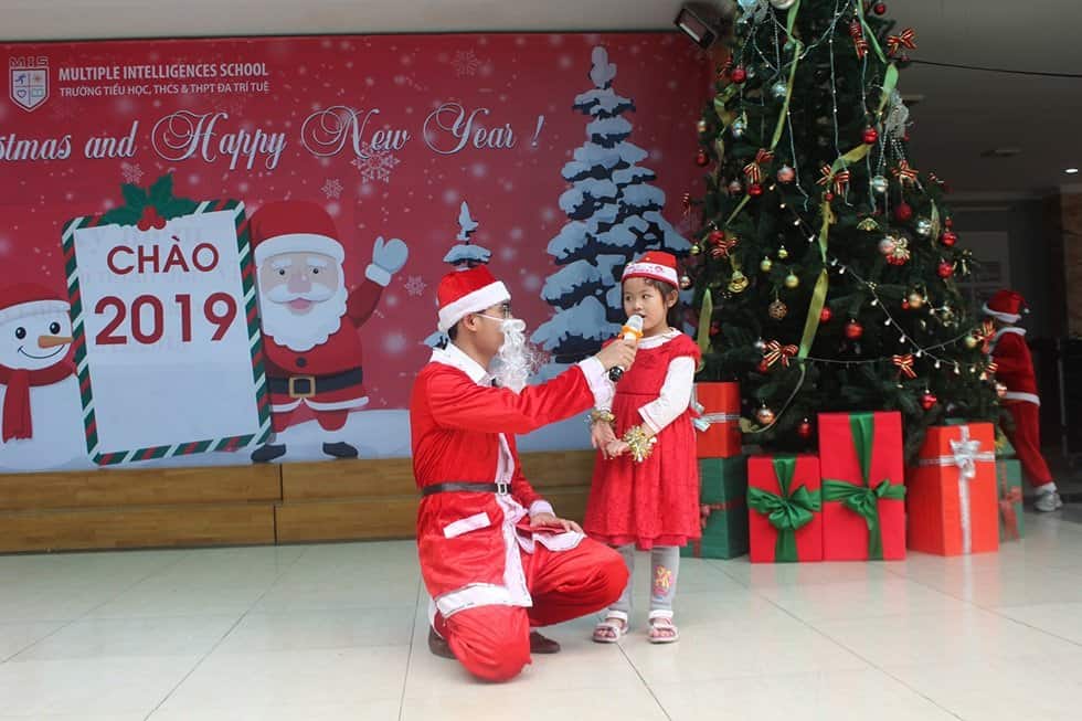 Hoạt động nổi bật nhất, hứng khởi nhất trong mùa Noel 2018 của thầy và trò Nhà trường là chương trình “Giáng sinh an lành” được tổ chức vào chiều ngày 24/12/2018. Đặc biệt, chương trình còn có sự góp mặt của các giáo viên nước ngoài là những người trực tiếp giảng dạy chương trình tiếng Anh tại trường. Trong chương trình, các con đã được lắng nghe những giai điệu quen thuộc trong ngày Lễ giáng sinh, được thưởng thức những điệu nhảy sôi động, được ông già Noel tặng quà. Đặc biệt, cũng trong chương trình “Giáng sinh an lành”, các con đã ứng dụng những kiến thức, kĩ năng mình được học tập, rèn luyện để trực tiếp giao lưu với các thầy giáo, cô giáo nước ngoài. Qua đó, các con biết được thêm những phong tục tổ chức Noel ở các nước khác. Sau đây là một số hình ảnh của chương trình.