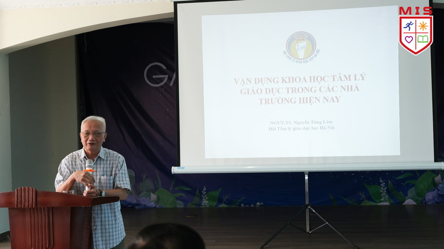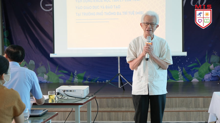 Nhân dịp này, cán bộ giáo viên trường Đa Trí Tuệ cũng được dự chuyên đề Vận dụng khoa học Tâm lý lứa tuổi vào giáo dục và đào tạo, do NGƯT-TS Nguyễn Tùng Lâm trình bày.