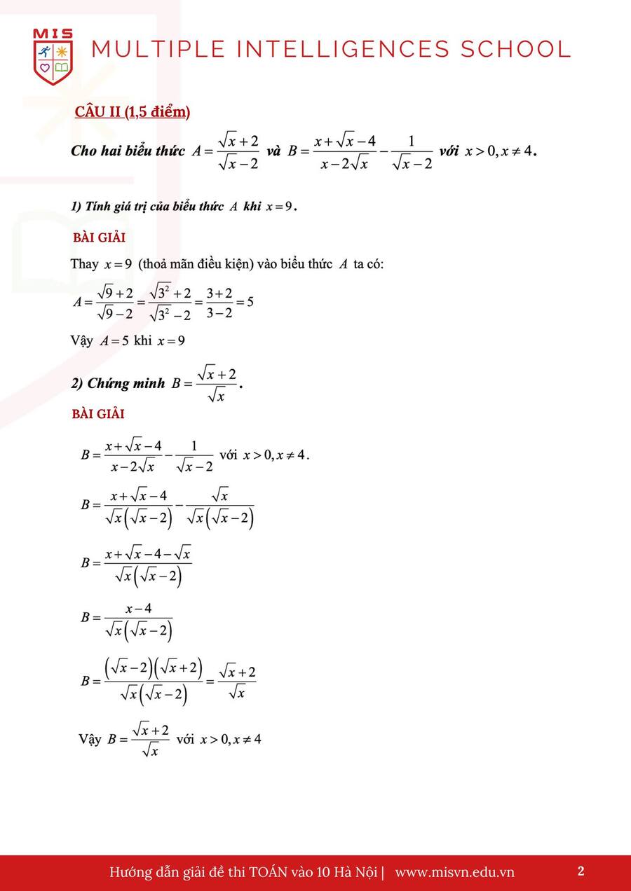 MIS mời ba mẹ cùng các con xem đáp án môn Toán sáng ngày 08.6.2025.