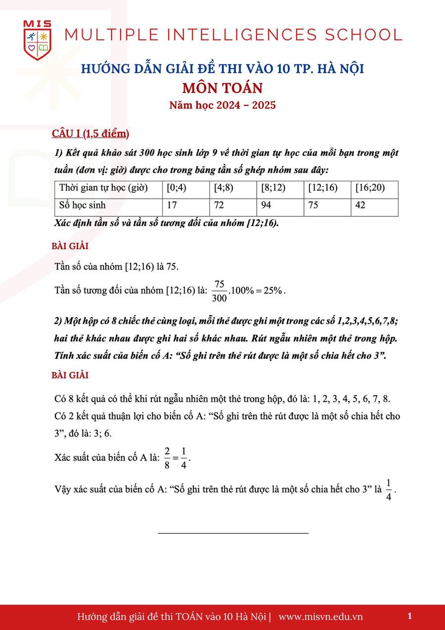 KỲ THI VÀO 10 TP HÀ NỘI 2024-2025
