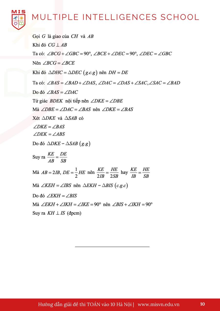 TRƯỜNG PHỔ THÔNG LIÊN CẤP ĐA TRÍ TUỆ MIS