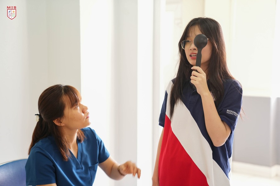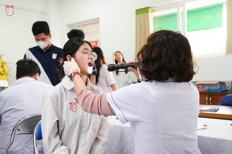 Qua đợt khám sức khỏe định kỳ, MISers được đánh giá tổng quát về thể lực cũng như sự tăng trưởng của cơ thể như: kiểm tra về chiều cao, cân nặng, thị lực, thính giác, tâm thần, vận động, thăm khám các bệnh về tiêu hóa, hô hấp… để học sinh có thể phát triển một cách toàn diện.