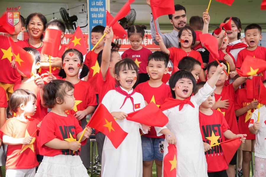 Hôm nay, sân trường MIS như một biển sóng đỏ vàng – nơi tuổi thơ hòa mình vào sắc cờ Tổ quốc, để biết rằng lòng yêu nước không chỉ được học trong sách, mà còn được nuôi dưỡng bằng những hình ảnh, ký ức và cảm xúc sống động.