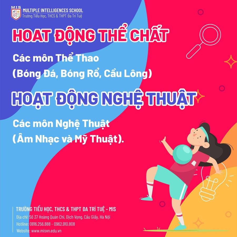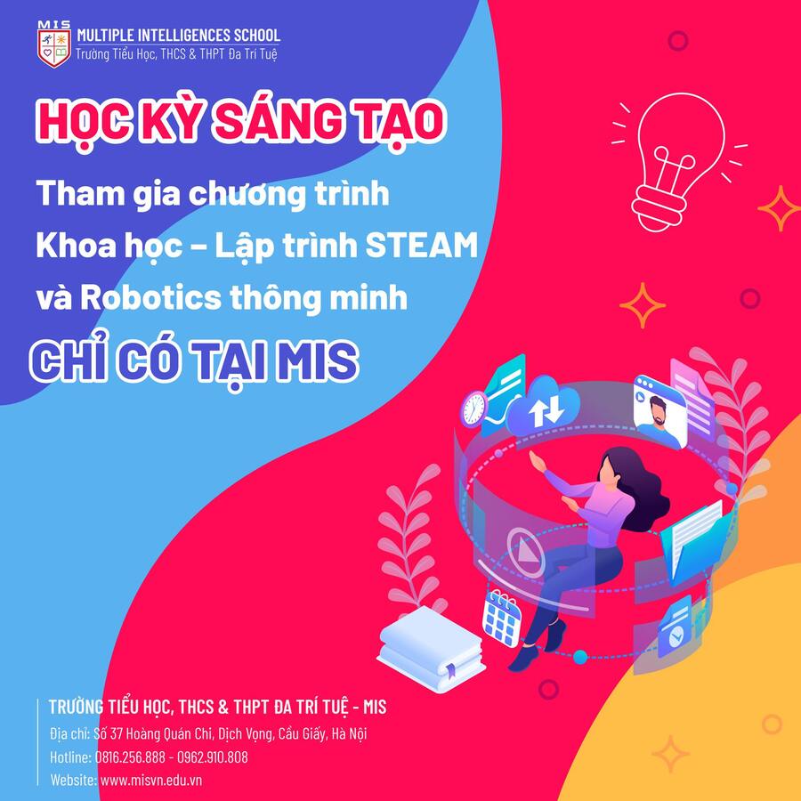 4- Trải nghiệm sáng tạo Khoa học – Lập trình STEAM và Robotics thông minh, các môn Thể Thao (Bóng Đá, Bóng Rổ, Cầu Lông) và các môn Nghệ Thuật (Âm Nhạc và Mỹ Thuật).