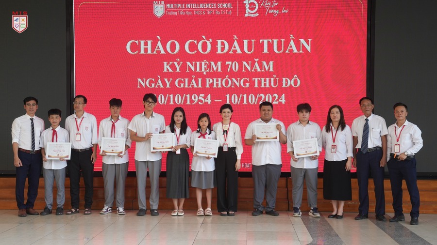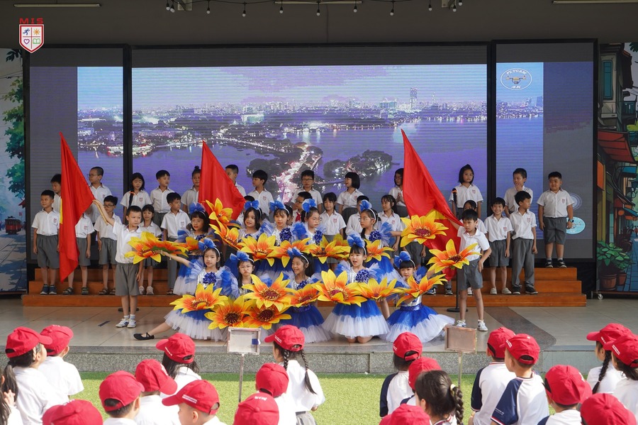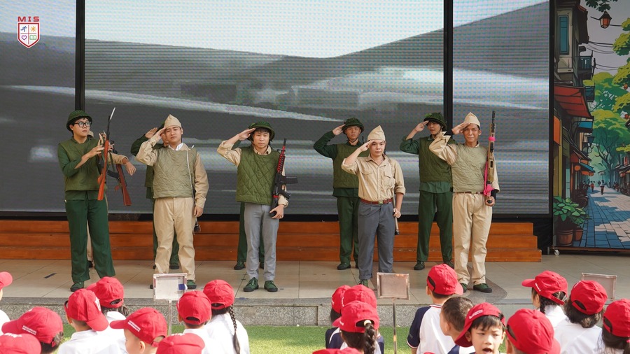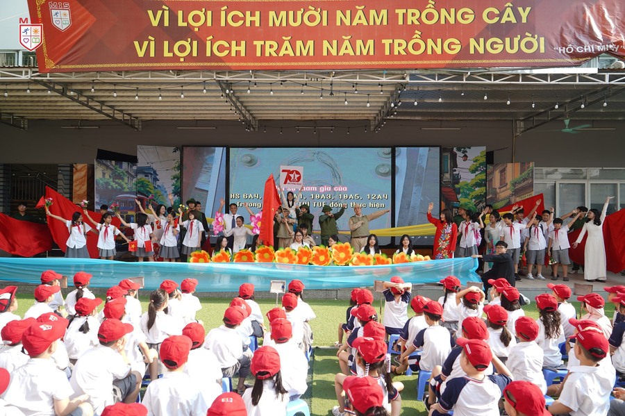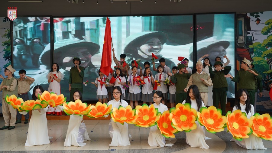 Dưới tiết trời thu Hà Nội, buổi sinh hoạt dưới cờ kỷ niệm 70 năm Ngày Giải phóng Thủ đô của thầy và trò Trường Đa Trí Tuệ – MIS tái hiện lại ngày này cách đây 70 năm, đoàn quân tiến về tiếp quản Thủ đô trong niềm hân hoan của các thế hệ người dân. Giai điệu “Trùng trùng quân đi như sóng, lớp lớp đoàn quân tiến về……” vang lên rộn vang khắp sân trường là bài học thiết thực để các em nhận biết lịch sử, thêm yêu quý, tự hào đối với mảnh đất ngàn năm văn hiến, anh hùng. Buổi sinh họat dưới cờ khép lại với nhiều dư âm tốt đẹp.