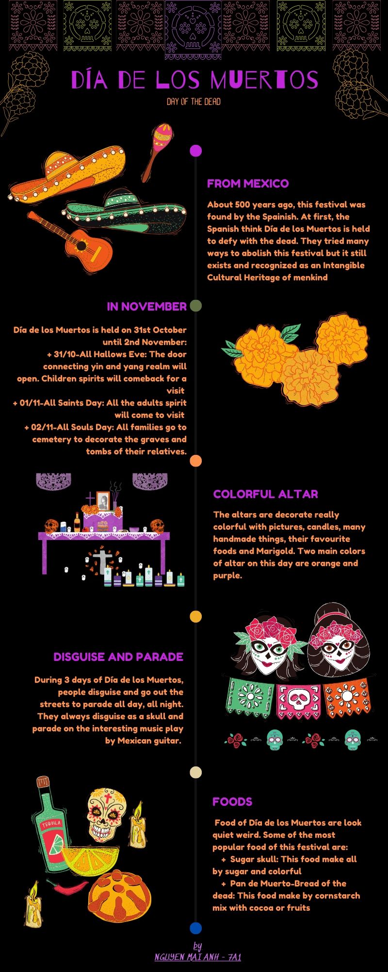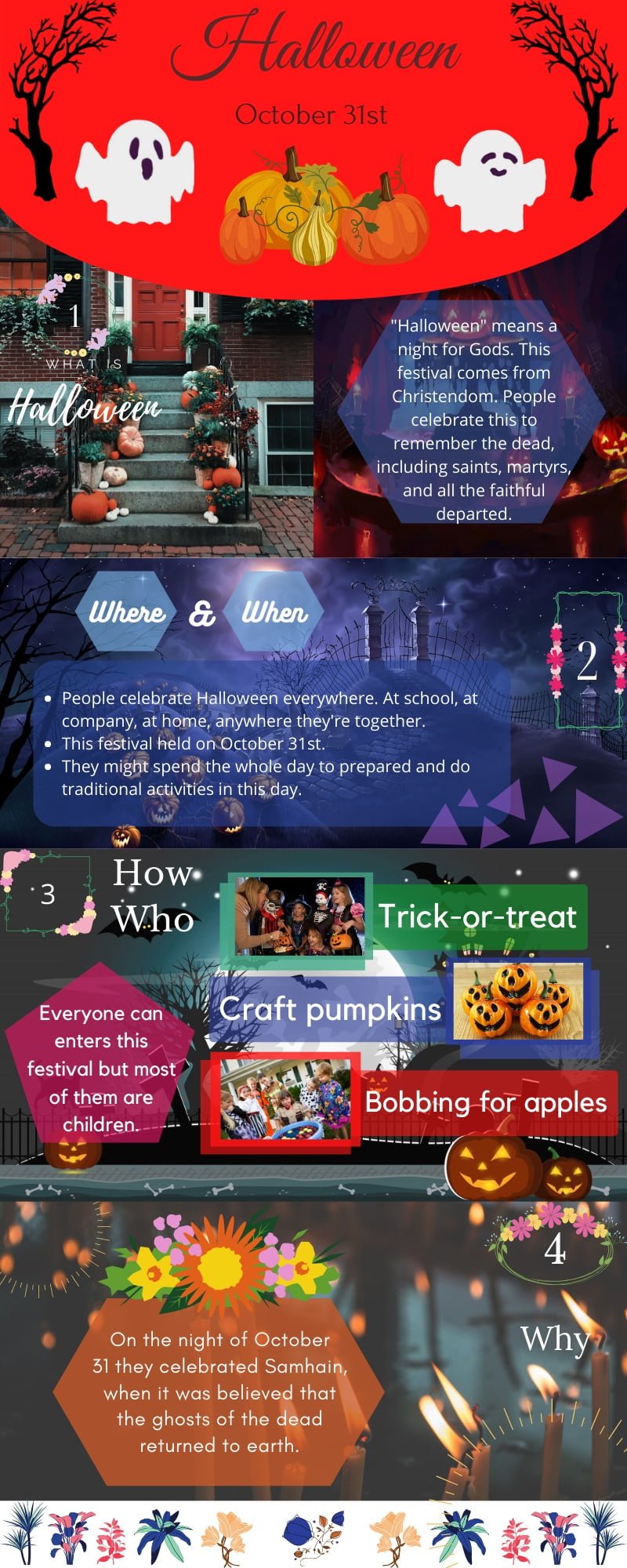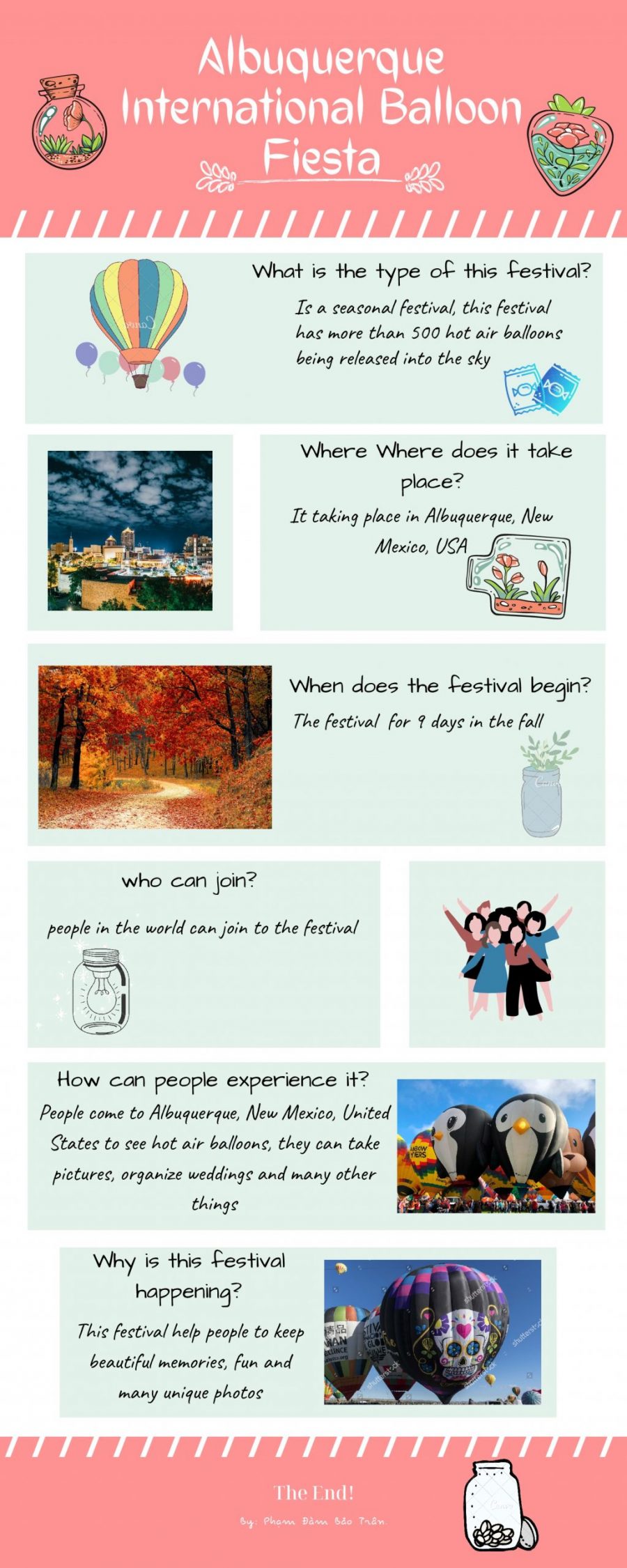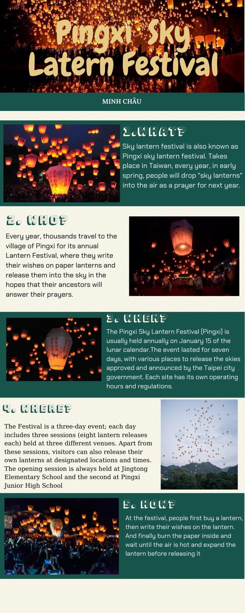 Quá trình giảng dạy trực tuyến (online) trong thời gian dịch bệnh Covid-19 hoành hành vừa qua, các thầy cô trường Đa Trí Tuệ (MIS) đều cố gắng tìm tòi các phương pháp giúp các con tiếp thu được bài học một cách tự nhiên và thoải mái, hiệu quả nhất. Cô đã thấy một số thầy cô trong trường sử dụng nhiều công cụ mới rất hay, đặc biệt là áp dụng hình thức thiết kế Infographic vào trình bày bài học. Cô cũng thấy hào hứng thích thú lắm, nhưng chưa biết nên ứng dụng bằng cách nào cho phù hợp. Rồi khi cô và trò tìm hiểu đến đơn vị bài học thứ 9 với chủ đề Festivals around the world (Lễ hội vòng quanh thế giới) trong chương trình Tiếng Anh lớp 7, hình ảnh của những tấm Infographic màu sắc về các lễ hội trên thế giới đã lóe lên. Cô quyết định: thay vì yêu cầu các con làm bài viết trong phần kỹ năng Writing trên Words hay Padlet như mọi khi, lần này sẽ để các con tự tìm hiểu về những lễ hội các con thích trên thế giới và trình bày thông tin dưới dạng Infographic.