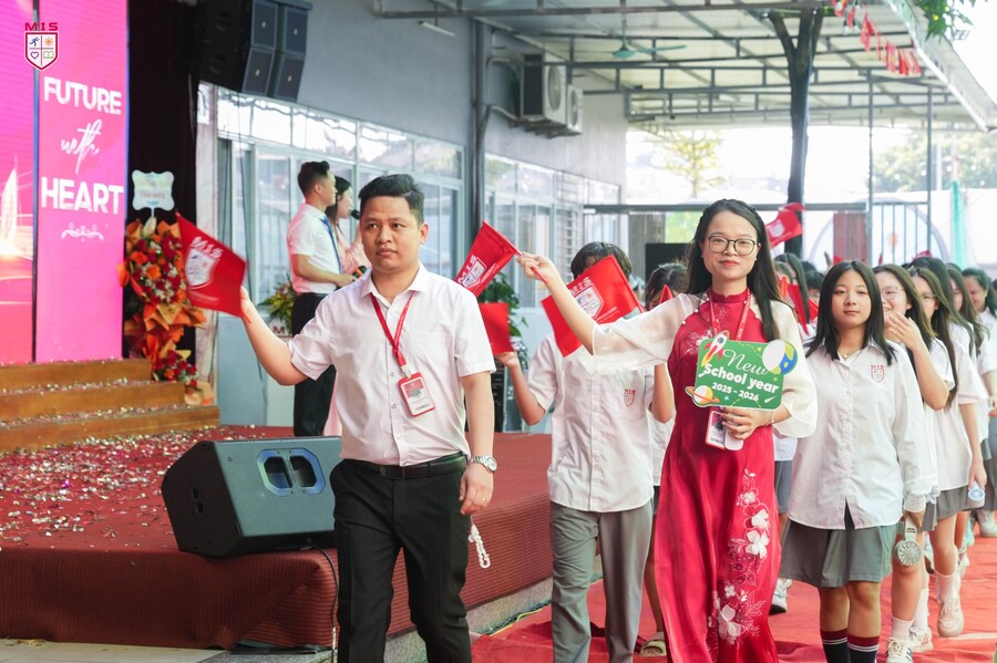 Lễ khai giảng hôm nay không chỉ có những tiết mục văn nghệ rộn ràng, những ánh mắt háo hức của học sinh, mà còn có cả niềm xúc động trong lời nhắn gửi từ Ban giám hiệu: “Mỗi ngày đến trường, hãy để MIS là nơi các con được lớn lên bằng cả trí tuệ và trái tim.”