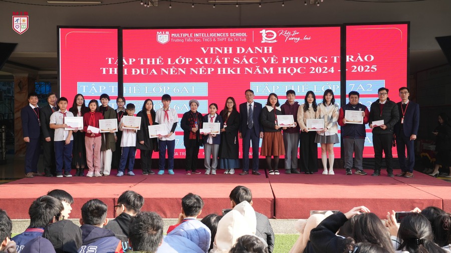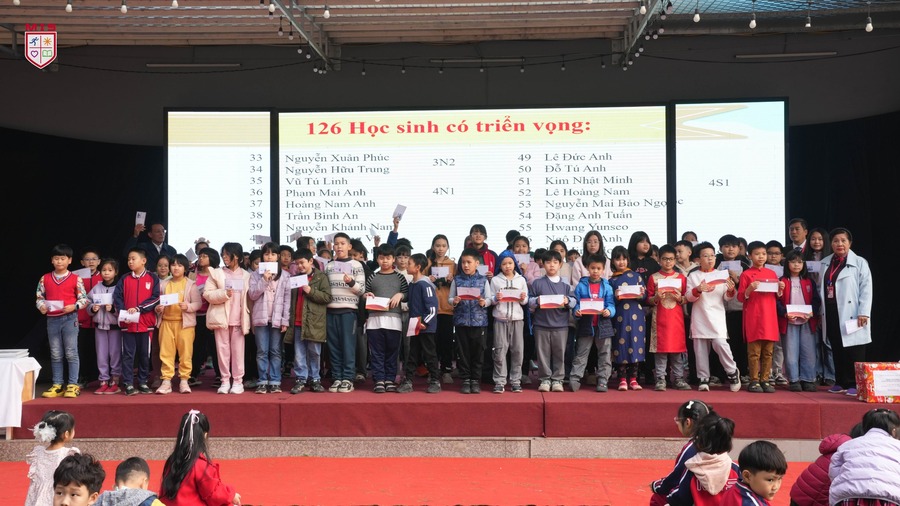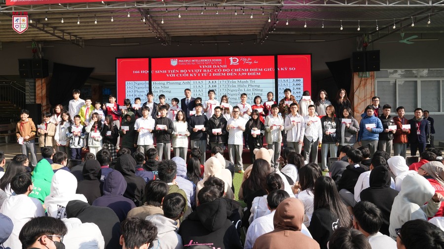 Trong buổi lễ sơ kết học kỳ 1, chúng ta không chỉ nhìn lại những con số hay những bảng điểm, mà còn nhìn thấy một bức tranh rực rỡ về sự nỗ lực, trưởng thành và bản lĩnh của mỗi bạn học sinh. Thành công không chỉ được đo bằng thành tích, mà còn là hành trình các bạn tự mình chinh phục những giới hạn, bước từng bước về phía ước mơ.