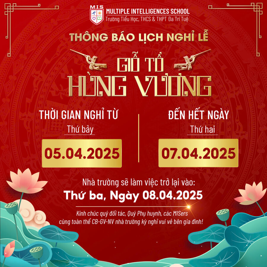 MIS xin trân trọng thông báo và chúc Quý đối tác, ba mẹ, thầy cô và MISers có những ngày nghỉ lễ bình an, ý nghĩa!