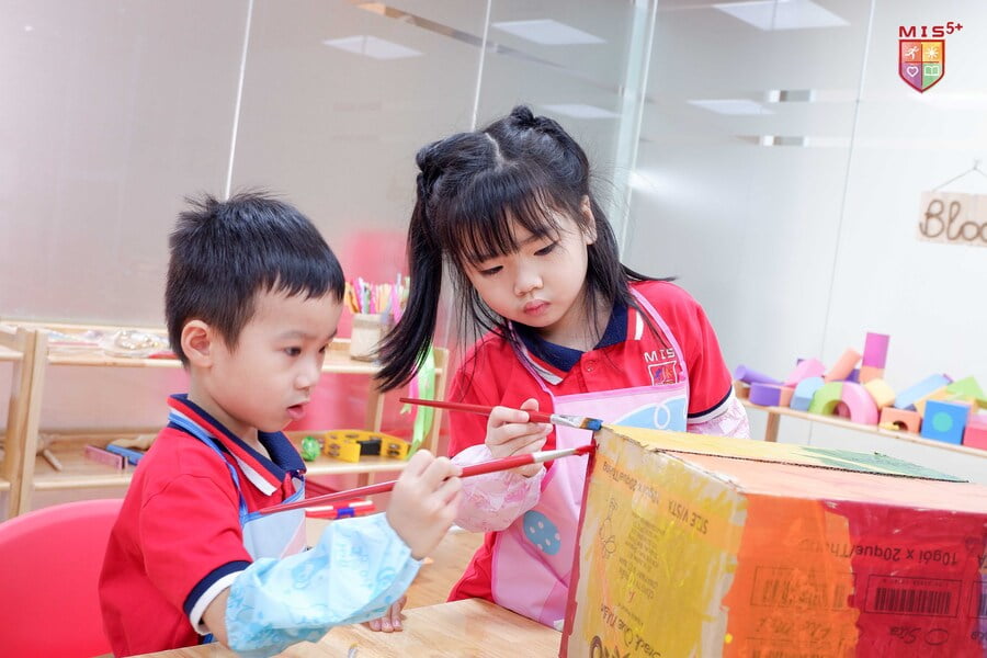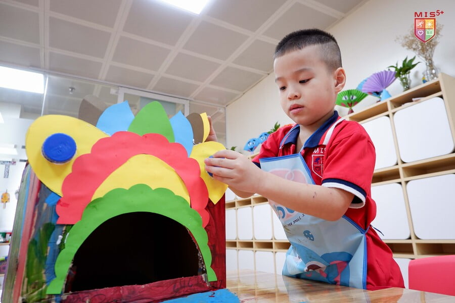 Trung thu này bọn tớ bận rộn kinh khủng luôn, không những lên ý tưởng, tìm thùng carton, chuẩn bị màu vẽ mà còn tỉ mỉ tô màu, trang trí, dán bờm lân… thú vị vô cùng luôn!