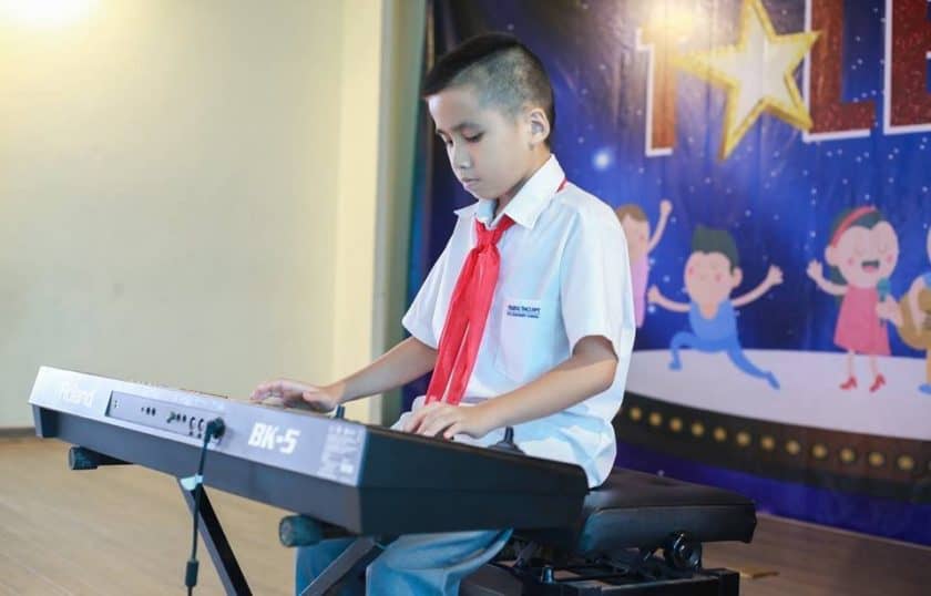 Ban Giám khảo gồm: cô Nguyễn Thị Thọ – P. Hiệu trưởng, Trợ lý TGĐ cô Hoàng Quế Nga, cô TPT Nguyễn Thu Hằng và các thầy cô giáo Âm nhạc và Nghệ thuật của nhà trường