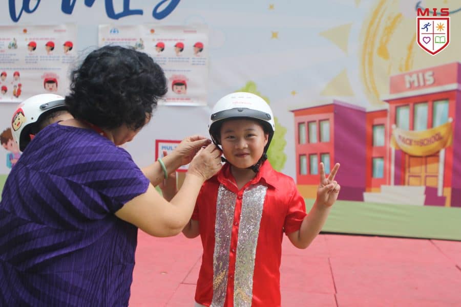 Cũng trong loạt hoạt động hưởng ứng Tháng ATGT, học sinh lớp 1 của nhà trường được nhận mũ bảo hiểm của chương trình “Giữ trọn ước mơ”. Sự kiện kết thúc với tiết mục văn nghệ sôi động, đáng yêu của các bạn nhỏ khối Tiểu học MIS.