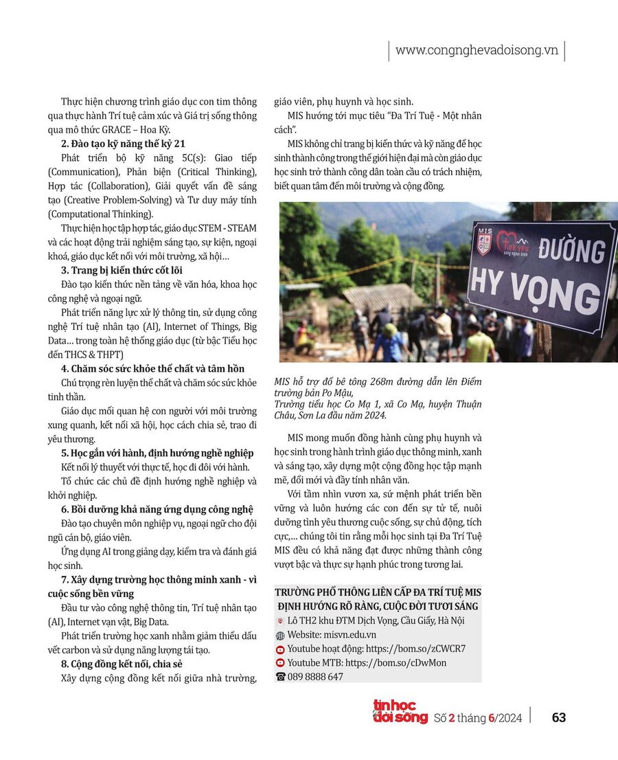 TRƯỜNG PHỔ THÔNG LIÊN CẤP ĐA TRÍ TUỆ MIS