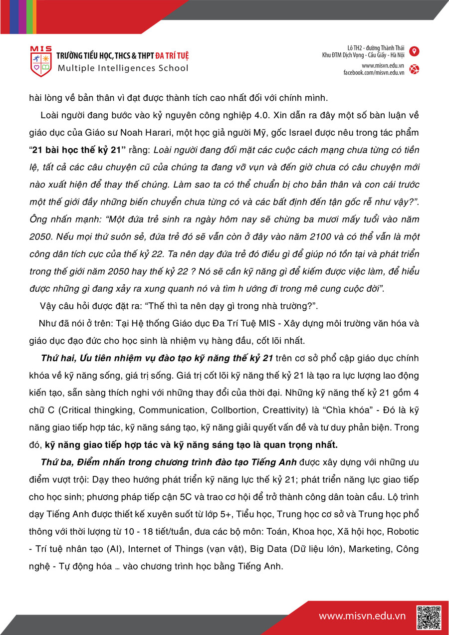 MISchool: ĐA TRÍ TUỆ – MỘT NHÂN CÁCH