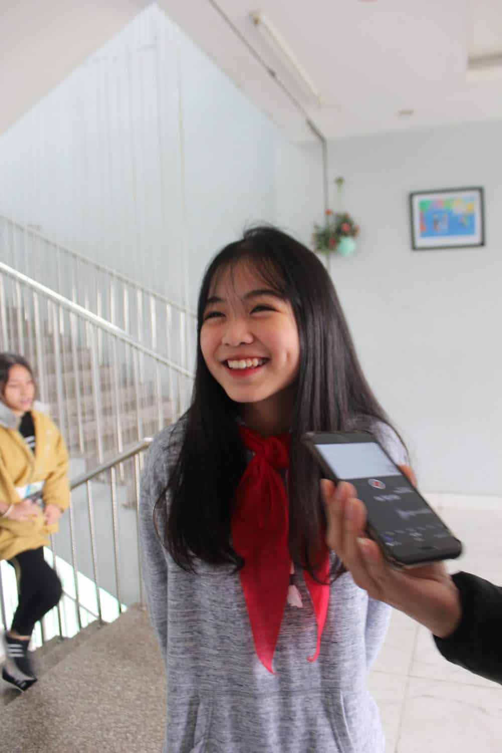 Bạn Minh Châu – một cô gái cá tính lớp 6A1 chia sẻ: “Em cảm thấy vui khi được mọi người yêu thương. Em mong muốn, không chỉ trong ngày Quốc tế Hạnh phúc mà còn tất cả những ngày khác, hạnh phúc sẽ đến với gia đình, thầy cô và bạn bè của em”. Như vậy, với Minh Châu, hạnh phúc là lan tỏa yêu thương. Đồng điệu với Châu, bạn Quỳnh Anh 8A3 cũng chia sẻ: “Em thấy vui nhất khi mẹ em vui”.
