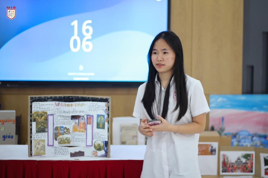 Học tập theo dự án không còn là những bài học khô khan trong lớp học mà khuyến khích các bạn sáng tạo cách kể lại lịch sử qua các bài viết, tranh vẽ và thuyết trình truyền cảm hứng. Những hoạt động này giúp MISers hiểu rằng lịch sử không khô khan, mà là một phần của bản sắc, là động lực để xây dựng đất nước.