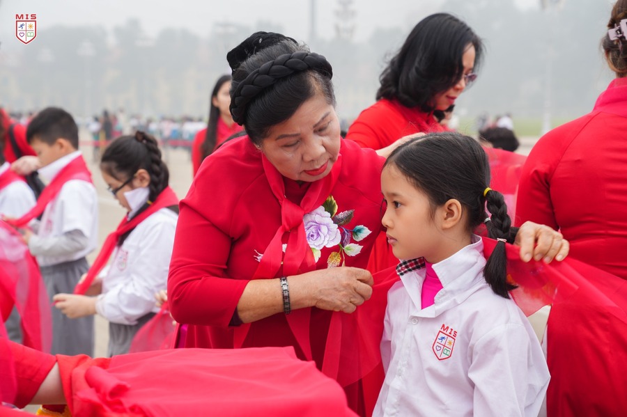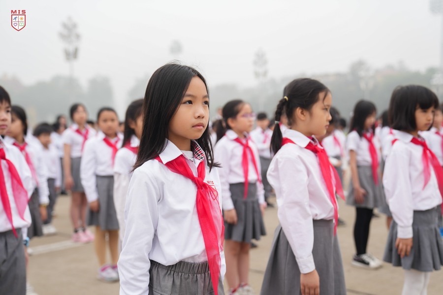 Hôm nay, các bạn MISer khối 3 đã chính thức được đứng chung hàng ngũ Đội viên với các anh chị lớp lớn. Đối với mỗi sao nhi đồng thì việc được đứng trong hàng ngũ Đội Thiếu niên Tiền phong Hồ Chí Minh là vinh dự, niềm tự hào đối với các con. Vì từ hôm nay, các con được mang trên vai chiếc khăn đỏ thắm màu cờ Tổ Quốc. Màu khăn đỏ như nhắc nhở các con phải phấn đấu vươn lên không ngừng để trở thành Đội viên tốt, xứng đáng là con ngoan trò giỏi – cháu ngoan Bác Hồ.