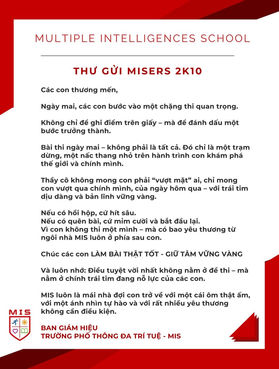 Gửi những MISers thân yêu chuẩn bị bước vào kỳ thi vào lớp 10,