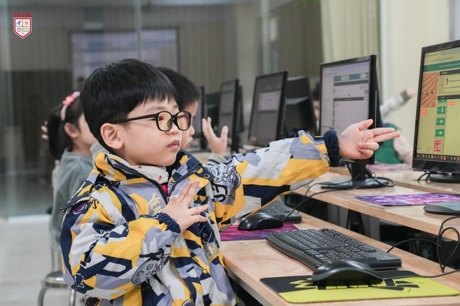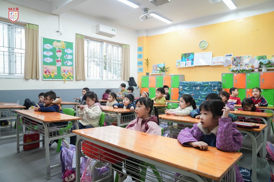 Buổi học đầu tiên ở MIS trôi qua nhanh thật! Mình thích trường này lắm, vì thầy cô và các bạn đều dễ thương, mà mình còn được chơi và học nhiều thứ hay ho nữa. Lớp 1 đúng là nhàn tênh như cô giáo nói.