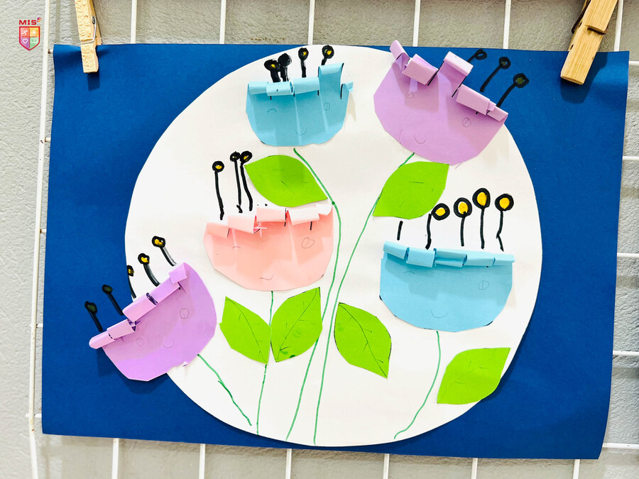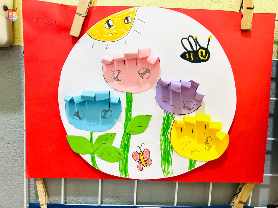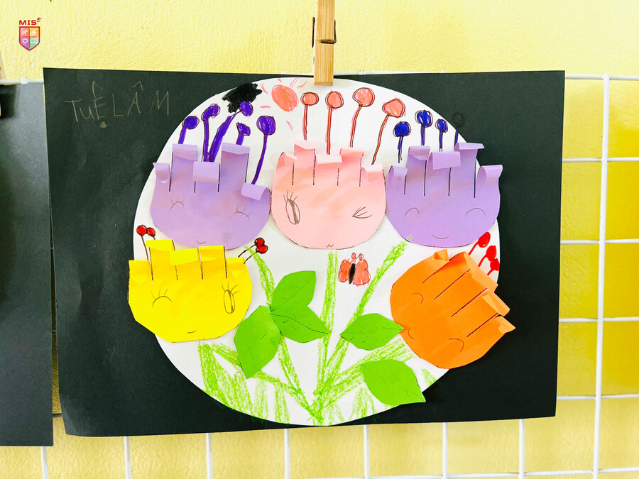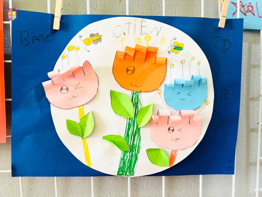 Từ những tờ giấy màu xanh, đỏ, tím, vàng, các bé mầm non đã tạo ra một “vườn hoa” rực rỡ trong giờ tạo hình. Các bé không chỉ cắt, dán mà còn điểm tô cho bức tranh thật sinh động và dễ thương. Có bé vẽ thêm ông mặt trời với đàn bướm xinh đẹp hay bạn ong chăm chỉ kiếm mật, có bé lại vẽ gương mặt của những bông hoa tươi cười. Đó là một thế giới trẻ thơ thật sắc màu.