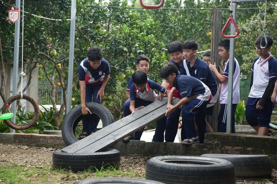 Bạn TMT chia sẻ: “Mỗi lần thêm một bước, thử thách càng khó hơn. Các trò chơi đồng đội rất khó, đòi hỏi sức khỏe, trí thông minh và sự can đảm. Những hoạt động này giống như những gì mà nhà trường luôn hướng chúng em tới. Đó là phát triển toàn diện cả về Thân – Tâm – Trí.