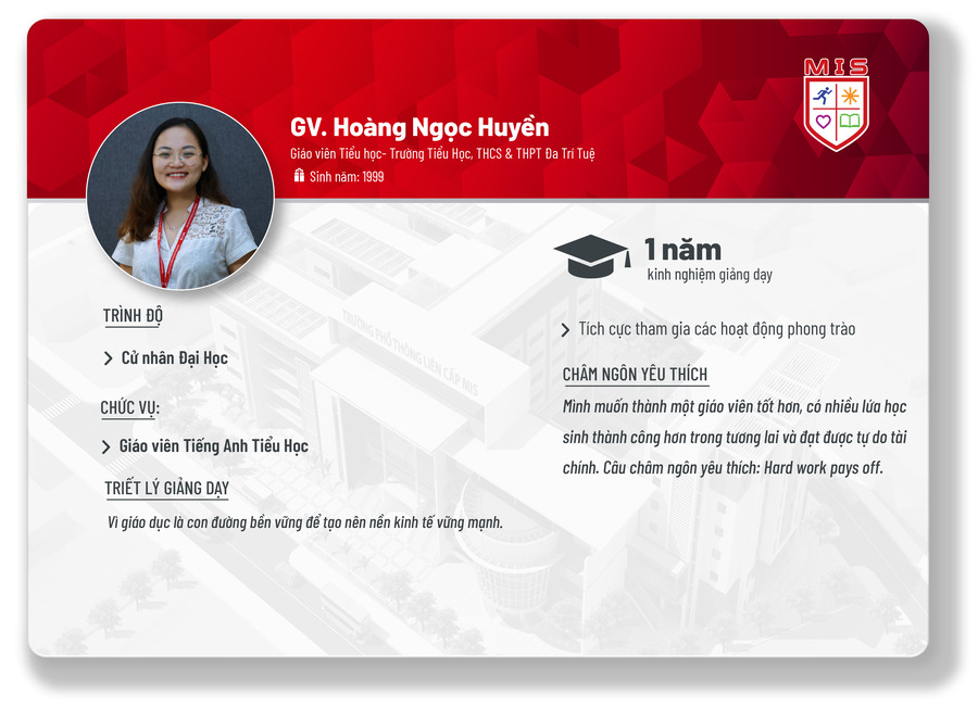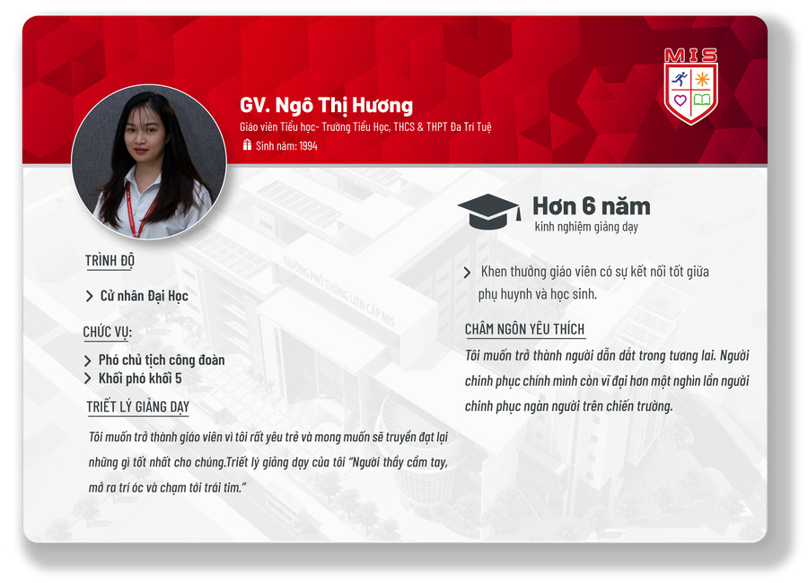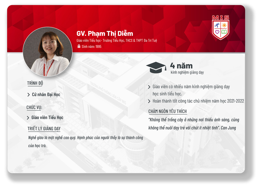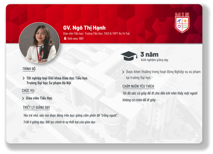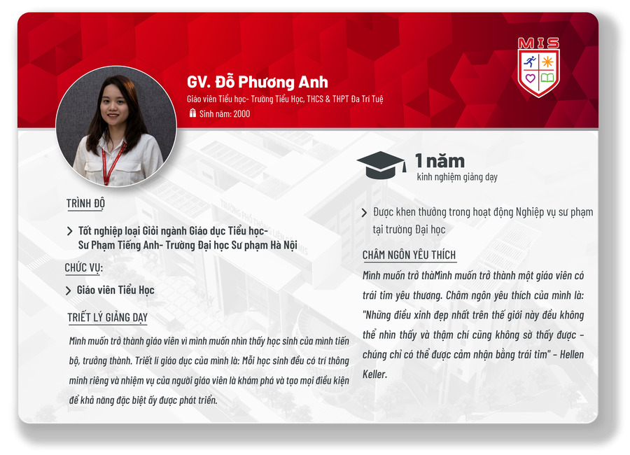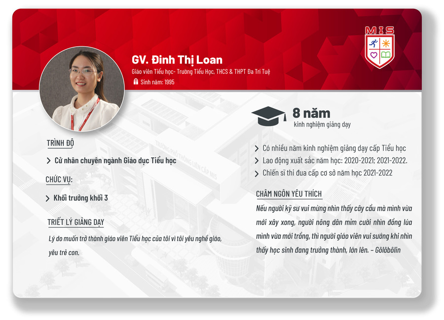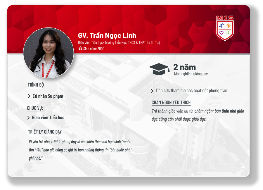 Trường PTLC Đa Trí Tuệ MIS chân thành cảm ơn các nhà giáo đồng hành cùng Tiểu học MIS và xin trân trọng giới thiệu tới học sinh và phụ huynh học sinh: