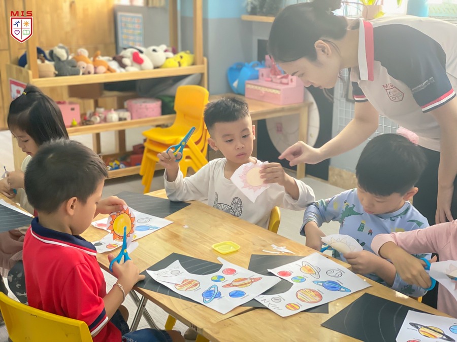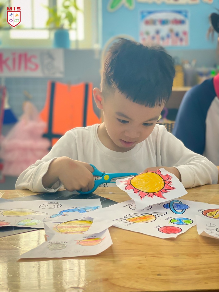 Tuần này, MISers nhí được học về Hệ Mặt Trời, các bạn được học, thảo luận và chính tay làm mô hình Hệ mặt trời và các hành tinh. Hoạt động này giúp các con tiếp cận trực quan để biến chuyển những khái niệm trừu tượng về hệ mặt trời, quỹ đạo của các hành tinh thành một bài học rất đơn giản, dễ hiểu và dễ nhớ