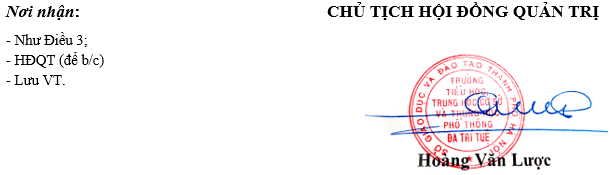 Điều 1. Thành lập Hội đồng Giáo dục Trường Tiểu học, Trung học cơ sở và Trung học phổ thông Đa Trí Tuệ năm học 2019 – 2020 gồm 15 cán bộ, giáo viên có tên sau đây: