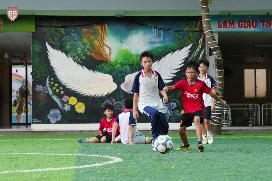 Buổi sáng hôm ấy, 1 buổi sáng bàng bạc của 1 ngày chớm thu, 1 buổi sáng thích hợp để ngồi ôn lại tình chị em những ngày mới nhận lớp thì lớp cô Tâm và lớp cô Huyền có trận bóng quan trọng để mở ra cánh cửa bước vào trận Bán kết trong khuôn khổ giải bóng đá Cup mùa thu ở MIS. 2 đội ra mắt trong không khí đầy tình cảm với mùi thẻ đỏ, thẻ vàng và chấn thương nồng nặc trong không khí. Ngoài đường biên, “chủ tịch CLB 9A1 Tâm Tin” và “chủ tịch CLB 9A2 Huyền Văn” hớn hở gặp gỡ nhau theo tinh thần: lọt sàng xuống nia – ko lớp (love) chị thì lớp (love) em đầy ắp những tình cảm…