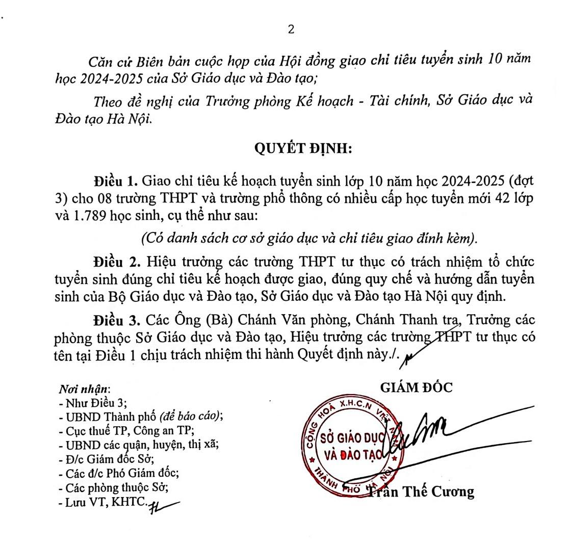 Nhà trường trân trọng thông báo “QUYẾT ĐỊNH về việc giao chỉ tiêu kế hoạch tuyển sinh vào lớp 10 MIS” năm học 2024 – 2025 của Sở Giáo dục và Đào tạo thành phố Hà Nội.