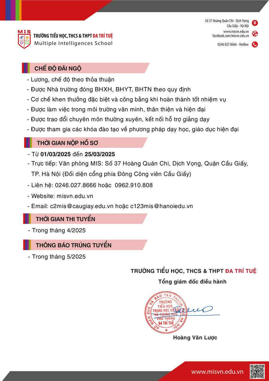 THÔNG BÁO TUYỂN DỤNG THCS & THPT NĂM HỌC 2025-2026