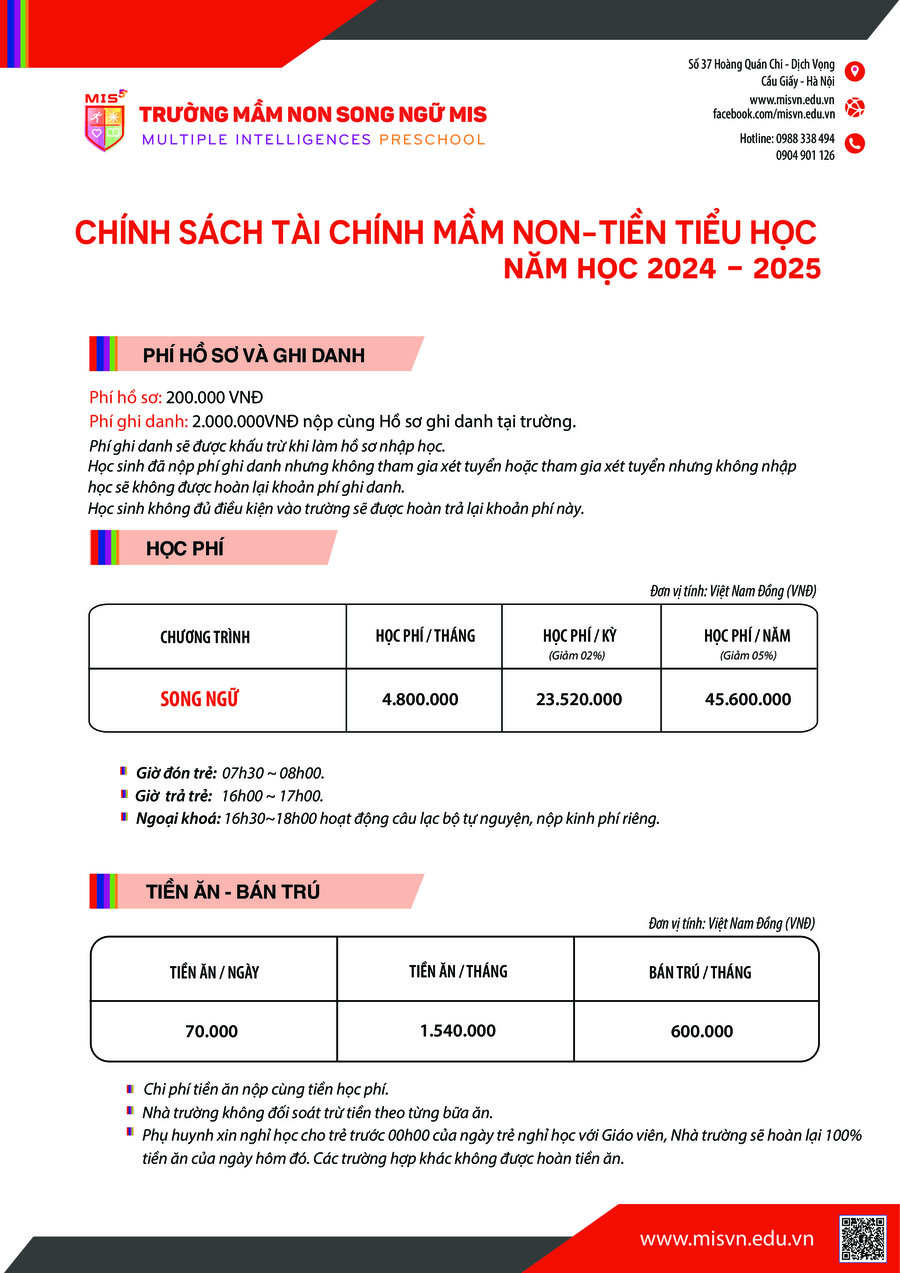 THÔNG TIN TUYỂN SINH MẦM NON – TIỀN TIỂU HỌC NĂM HỌC 2024 – 2025
