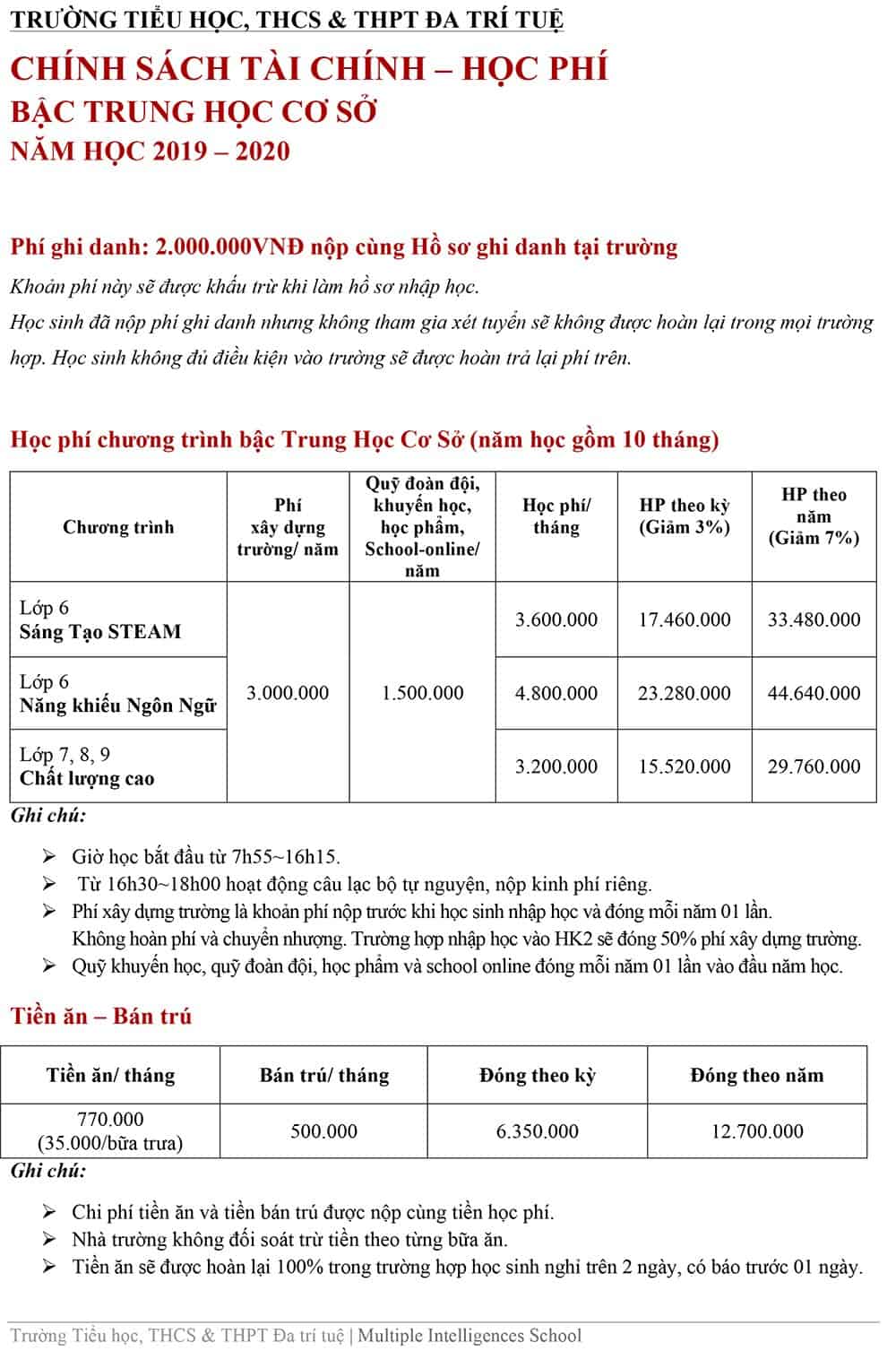 THÔNG TIN TUYỂN SINH THCS NĂM HỌC 2019 – 2020
