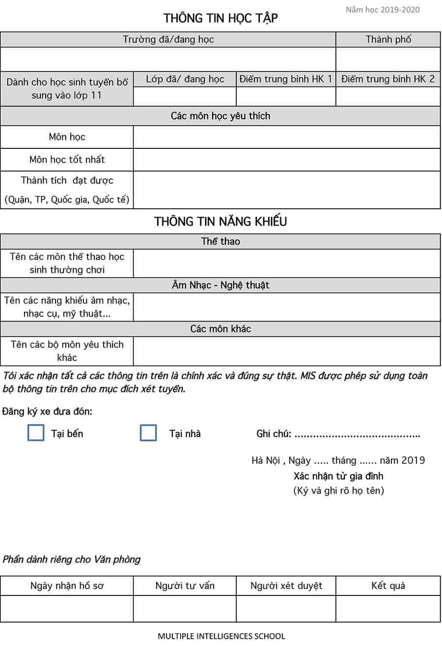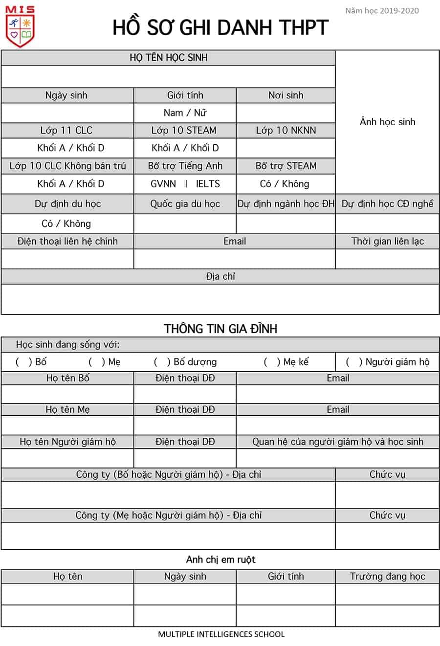 THÔNG TIN TUYỂN SINH THPT NĂM HỌC 2019 – 2020