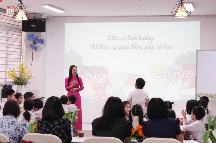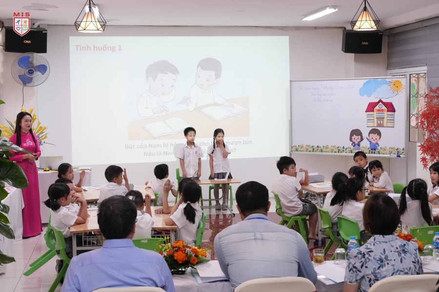 Với sự đồng hành của đôi bạn thân Hoạ Mi và Vành Khuyên tiết học càng trở nên đặc biệt thú vị. Chúng mình đã được sắm vai và xử lý các tình huống thực tế để tự rút ra bài chọ cho chính mình về cách giúp đỡ bạn bè khi cần. Chẳng hạn, khi bạn gặp khó khăn, chúng mình phải biết cách nói những lời động viên để bạn cảm thấy vui hơn. Những lời như “Cảm ơn” hay “Xin lỗi” sẽ giúp tình bạn của chúng mình ngày càng khăng khít hơn.