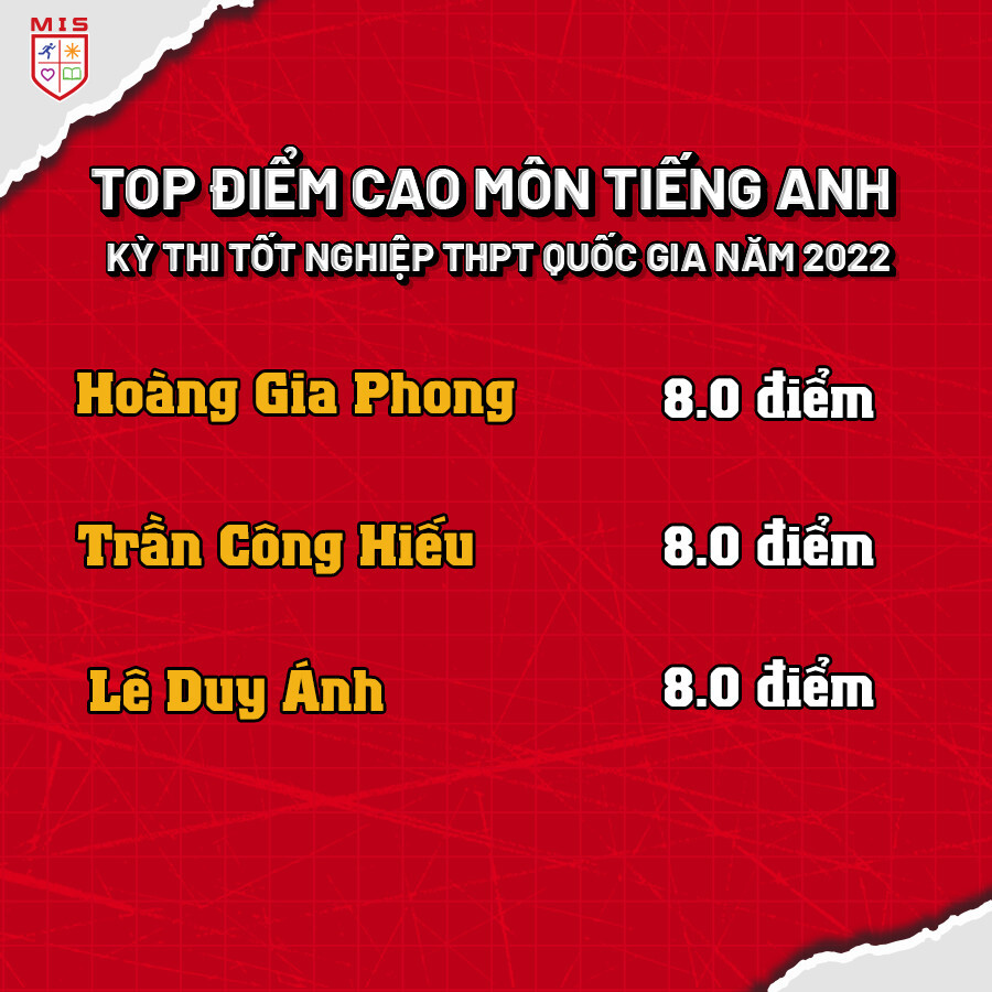 TOP ĐIỂM CAO MÔN TIẾNG ANH